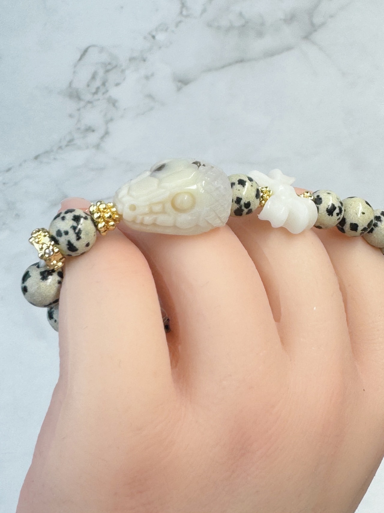 #天然石ブレスレット#パワーストーンブレスレット#天然石アクセサリー#金運#蛇#アラシャンアゲート#ホワイトジャスパー#ダルメシアンジャスパー#MIKEYA#ミケヤ