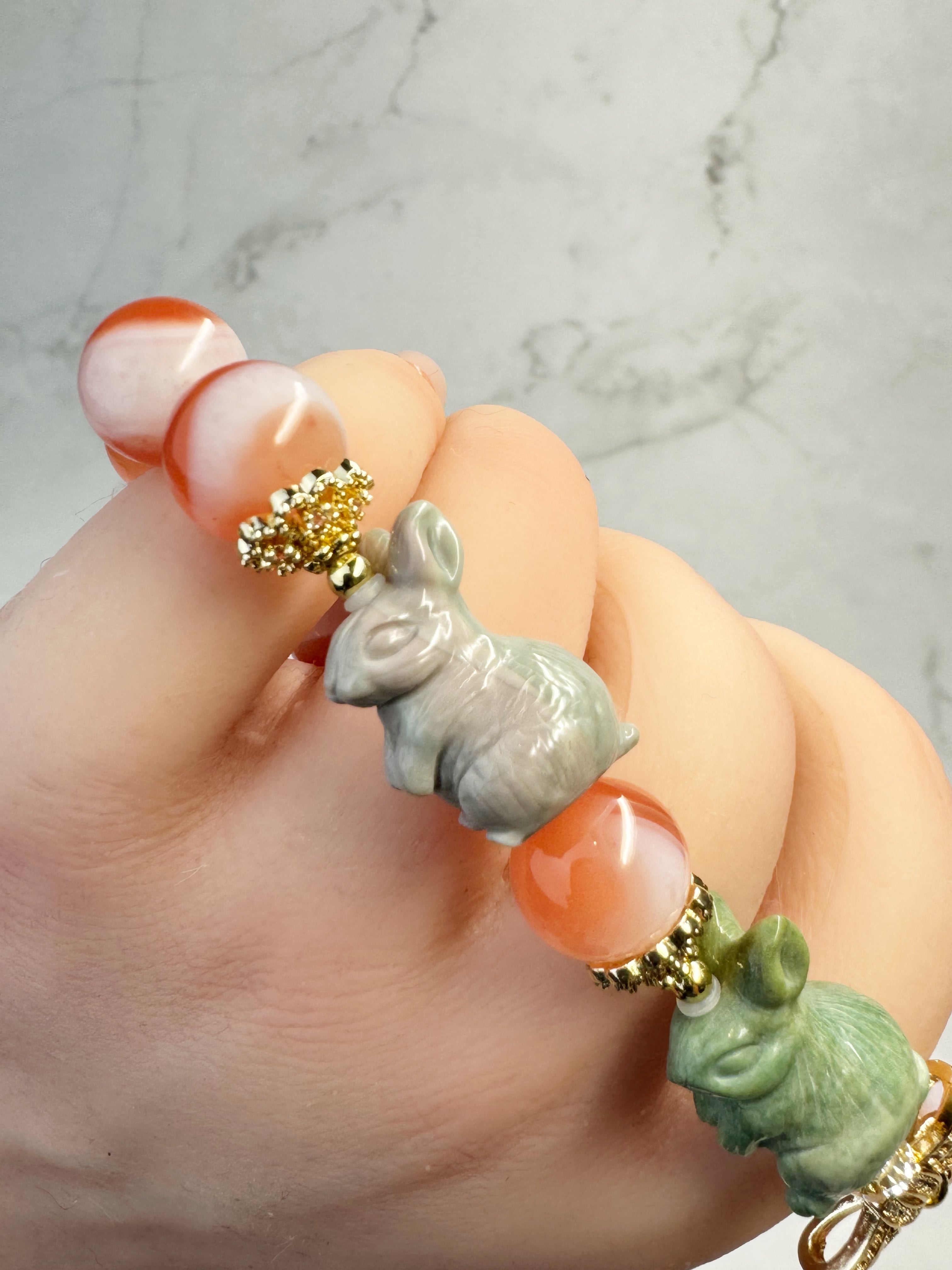 アラシャンアゲートのウサギと水晶、南紅瑪瑙と水晶の共生のブレスレットです。