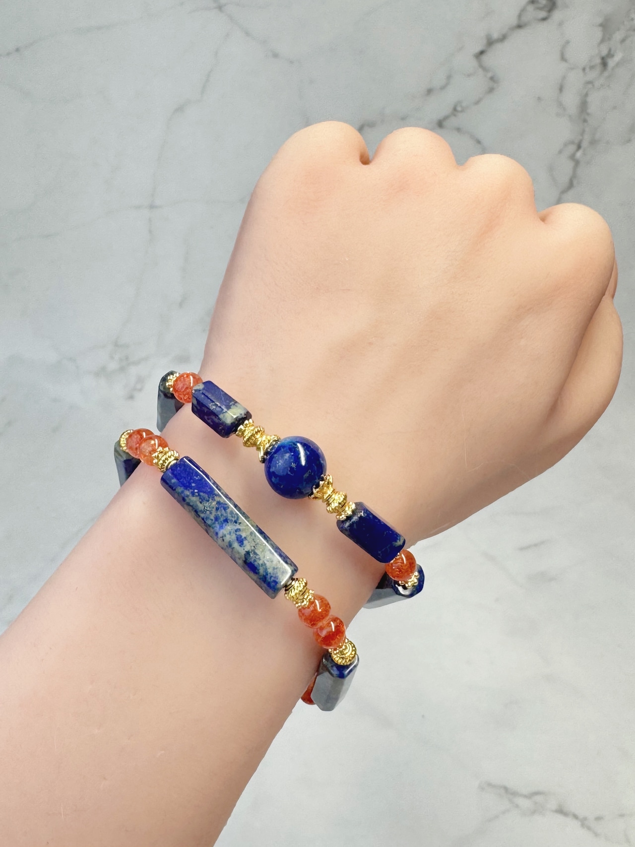 ラピスラズリとサンストーンの2本セットのブレスレットになります。