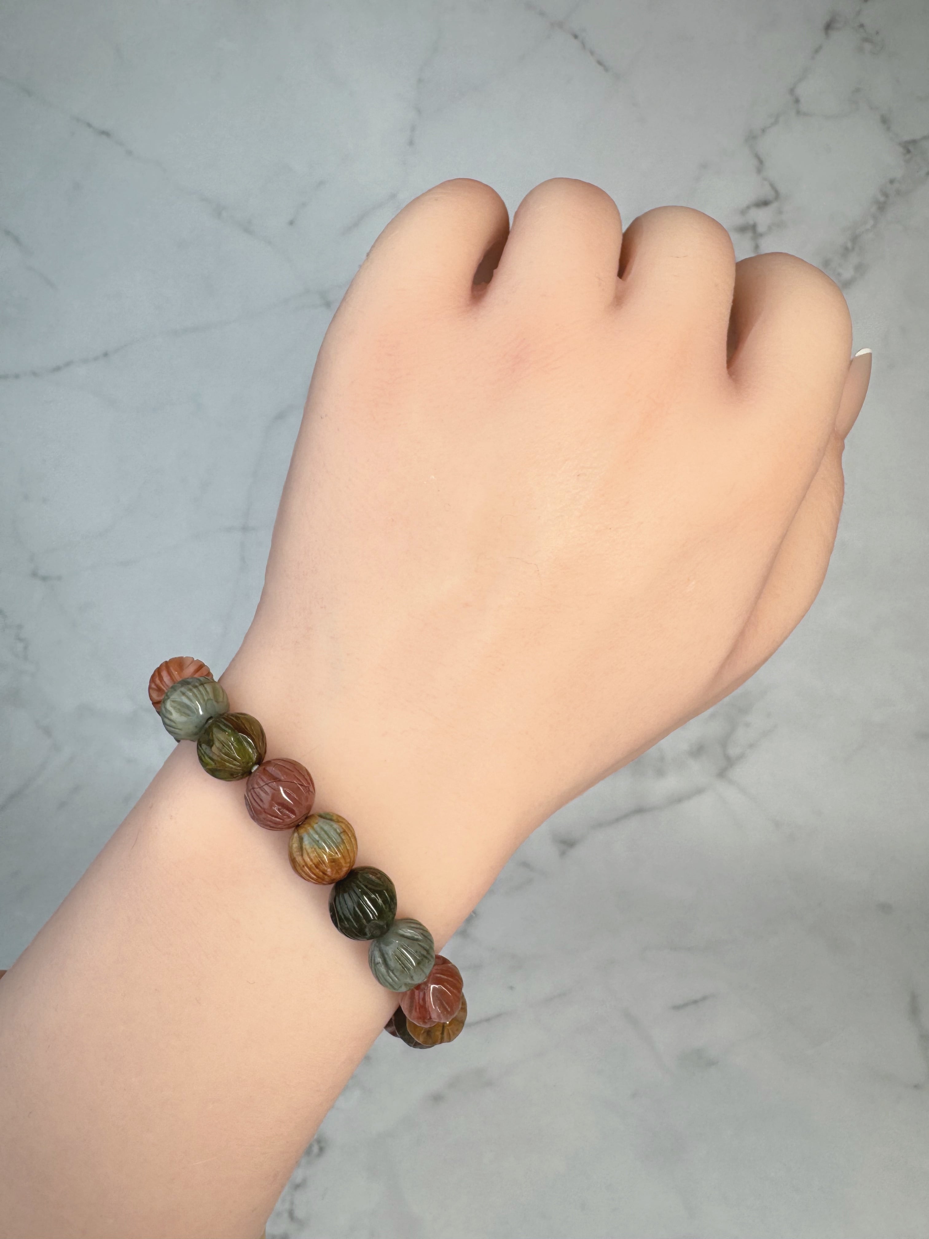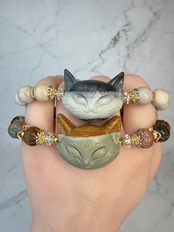 ①太極石(ネコ)×アラシャンアゲート×水晶(蓮)のブレスレットです。