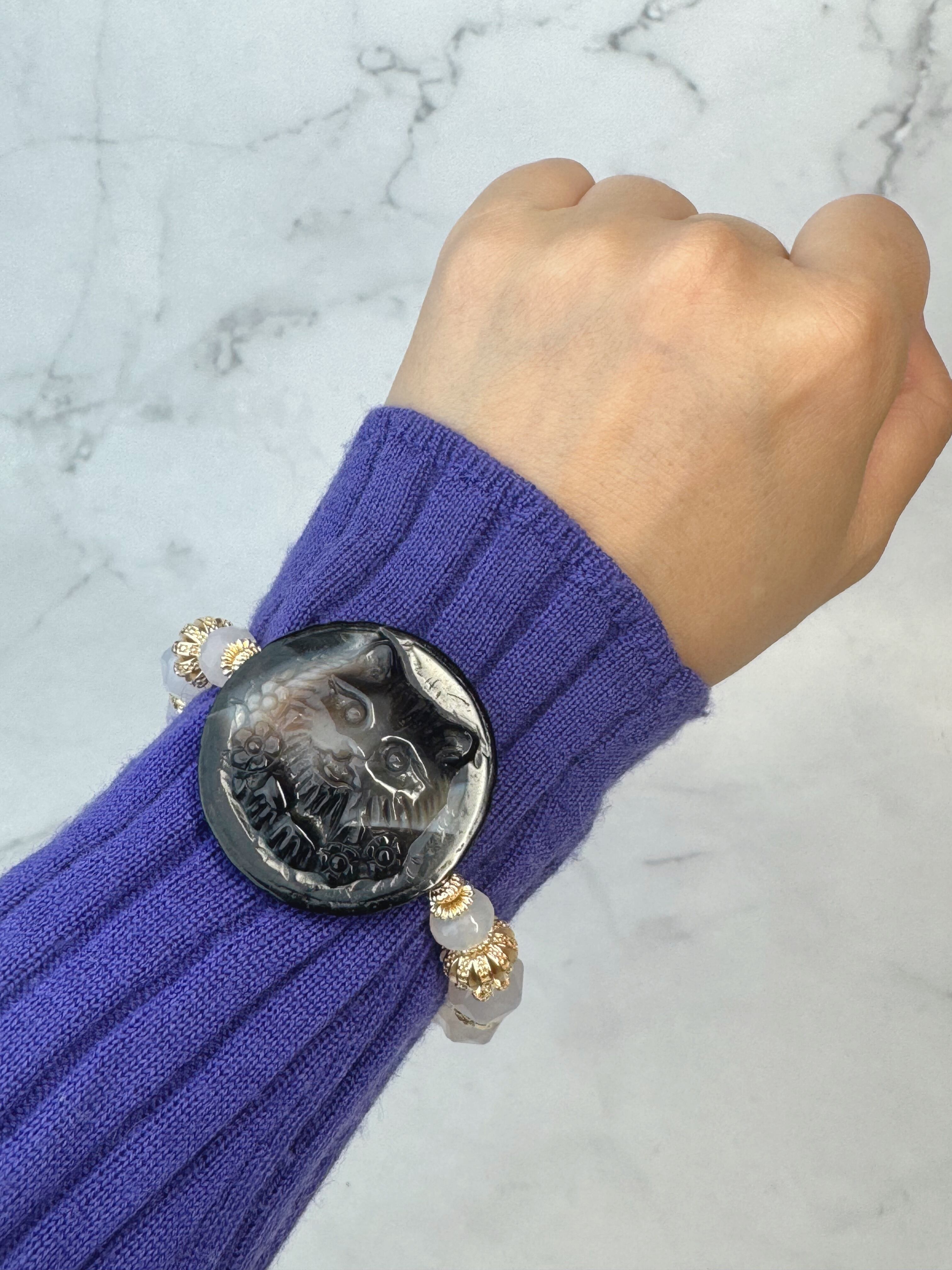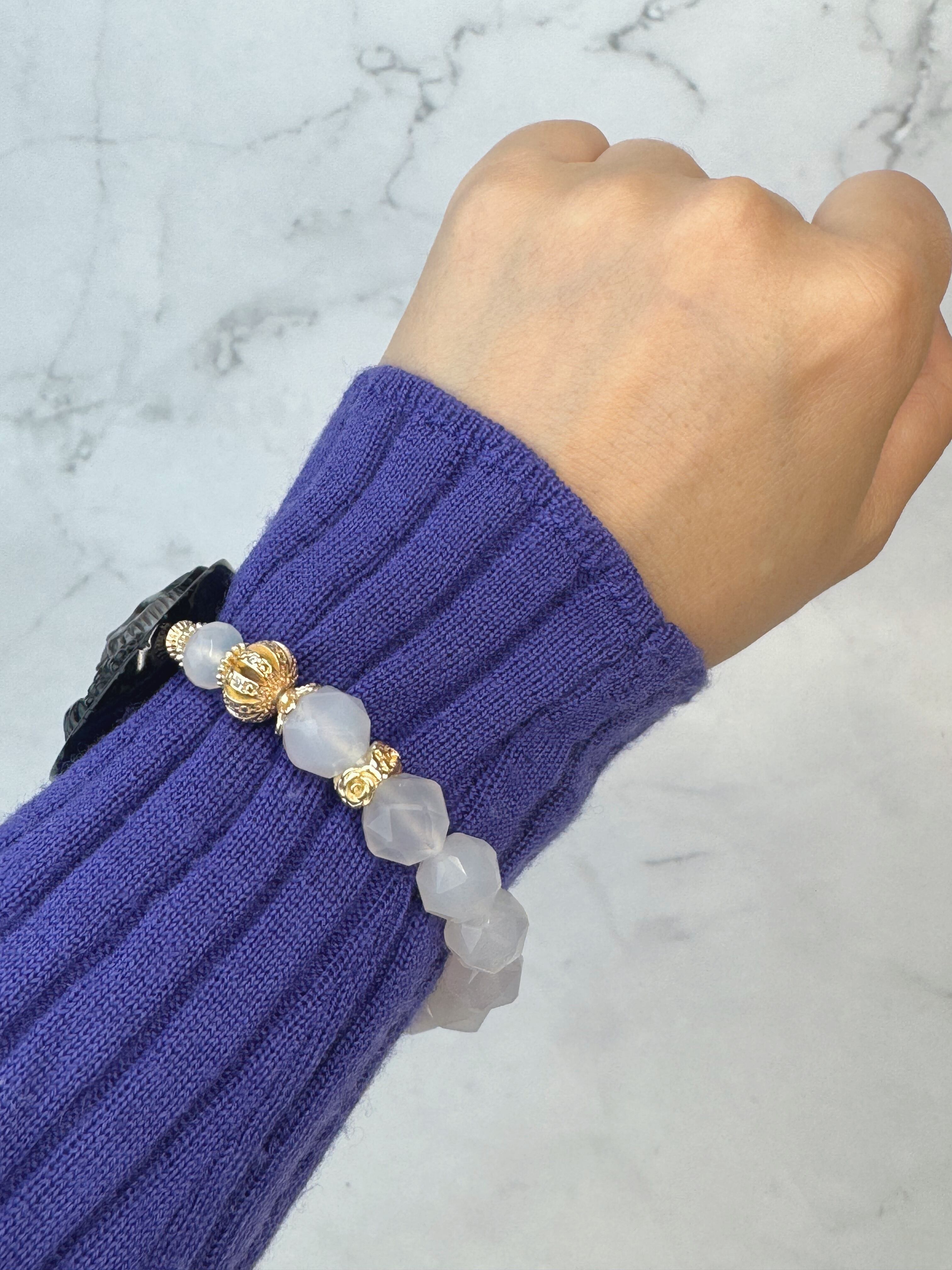 メノウ(ネコ)、ホワイトカルセドニーのブレスレットになります。