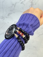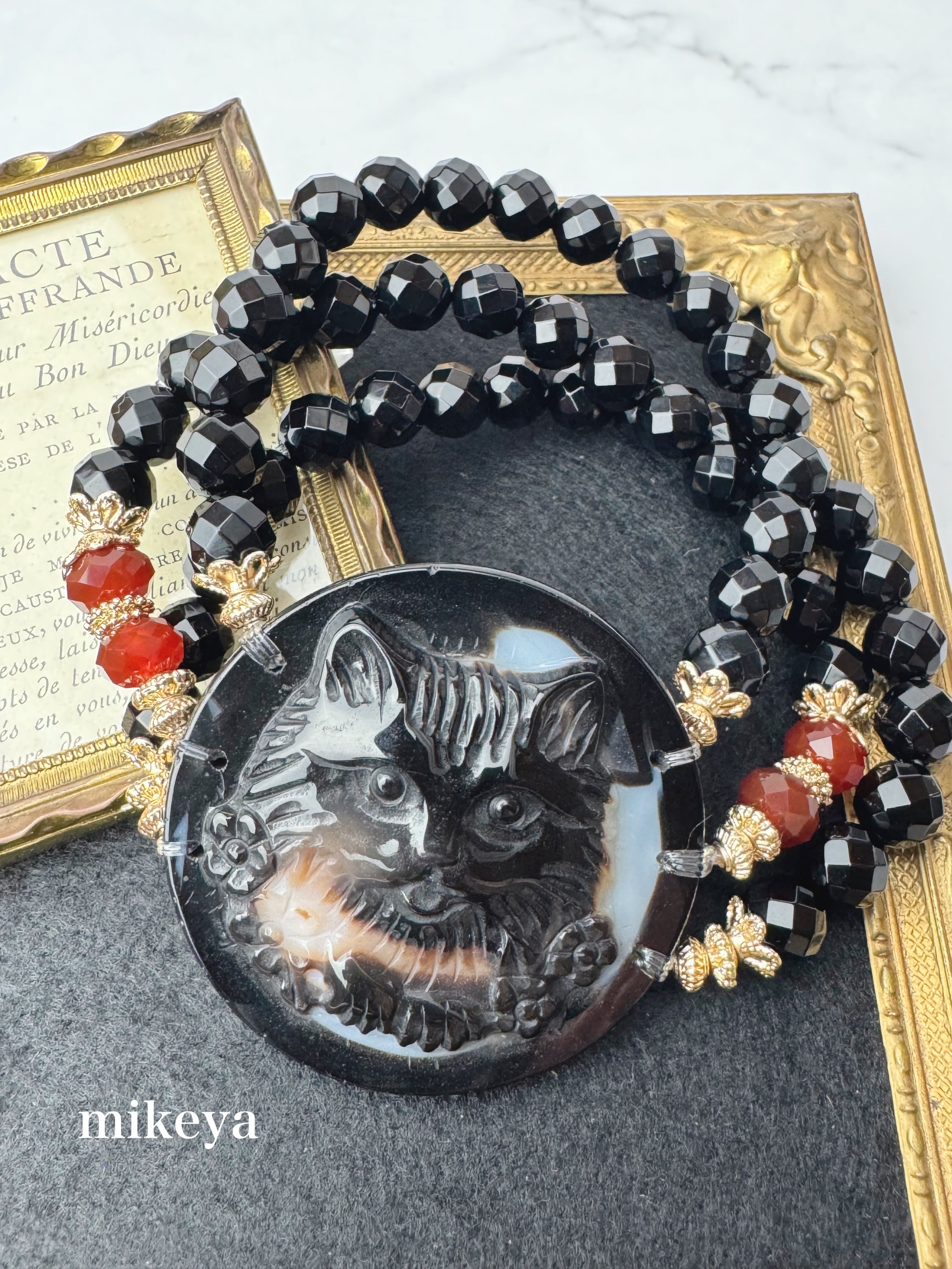 メノウ(ネコ)、オニキス、レッドアゲートのブレスレットになります。