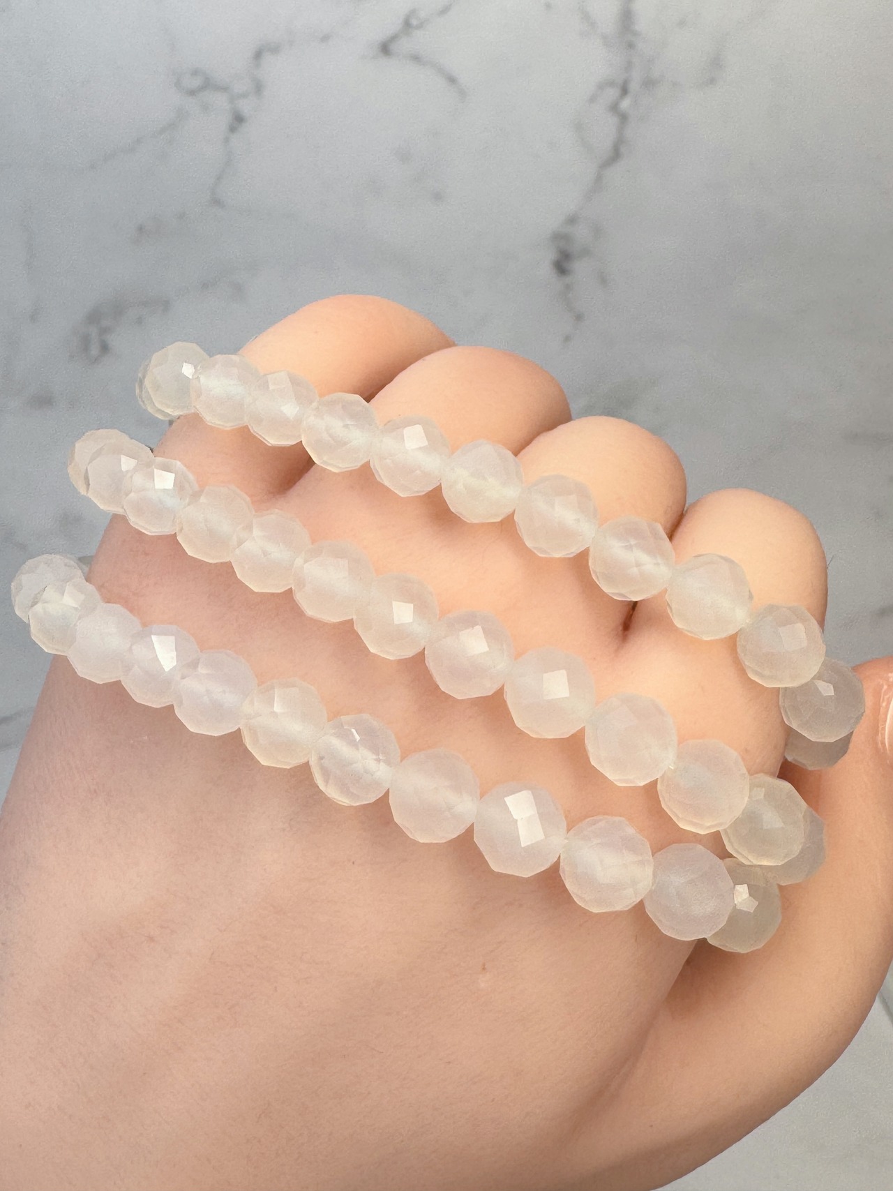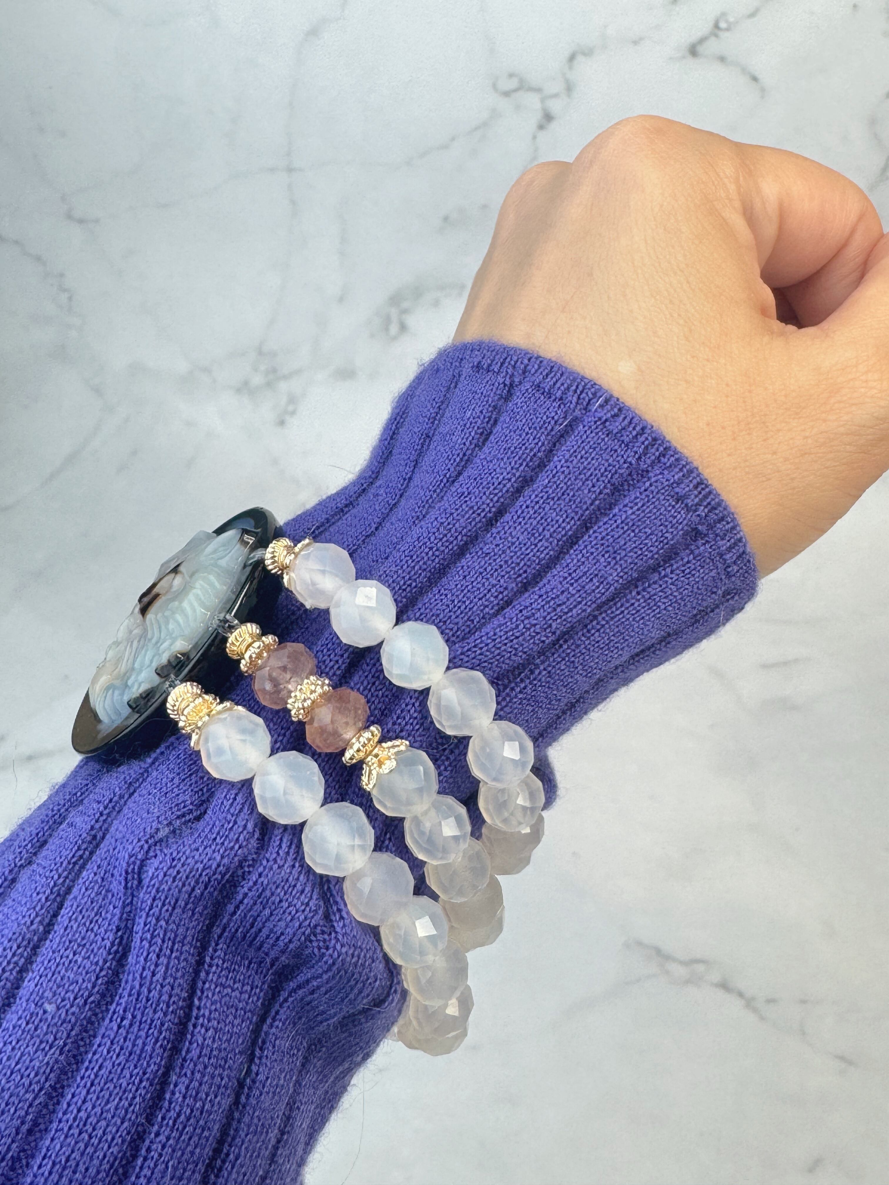 メノウ(ネコ)、ホワイトカルセドニー、ピンクエピドートのブレスレットになります。