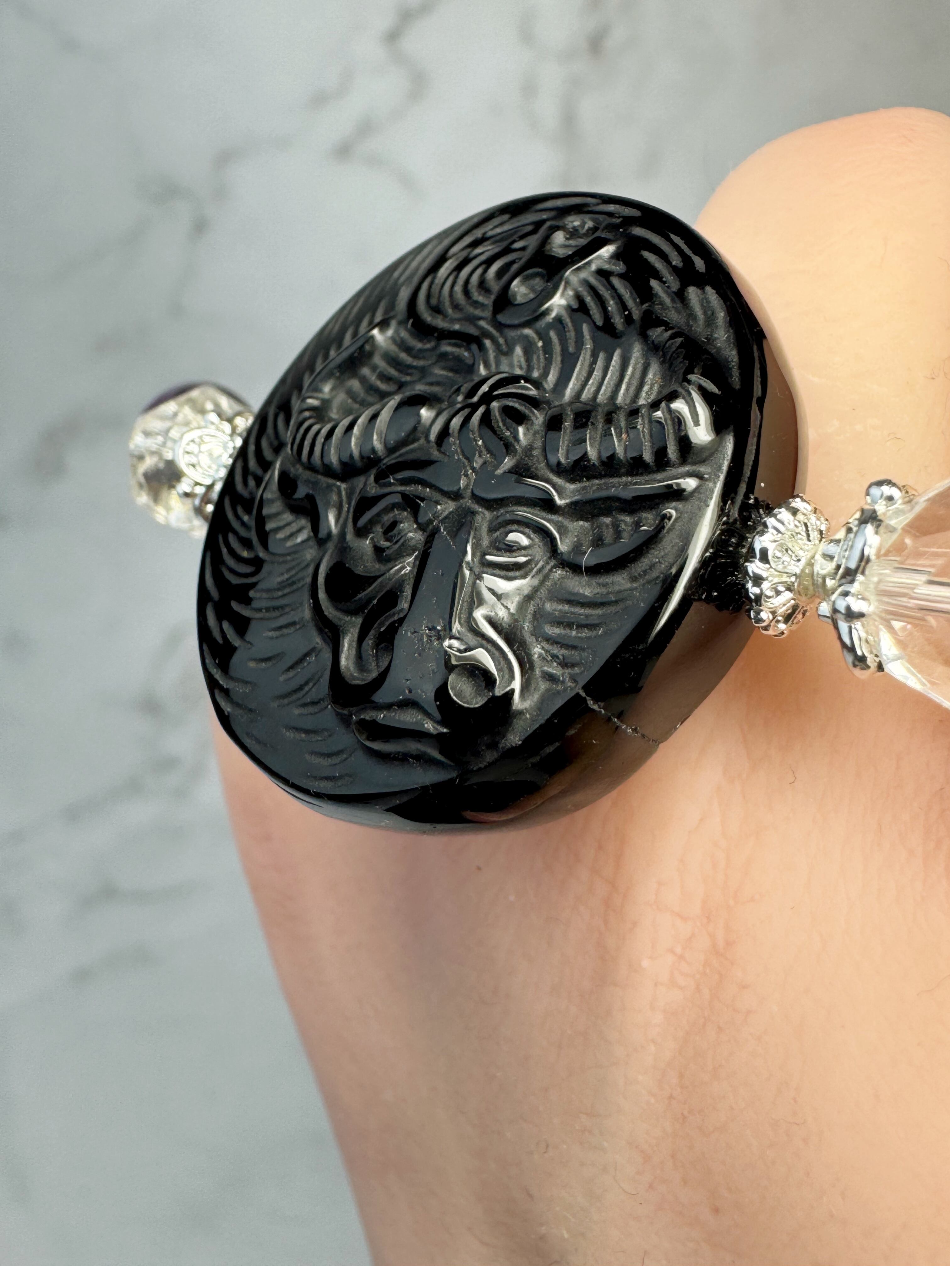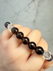 ブラックオブシディアン(牡牛座♉︎)、水晶、ストライプアメジスト、ダークスモーキークォーツのブレスレットになります。