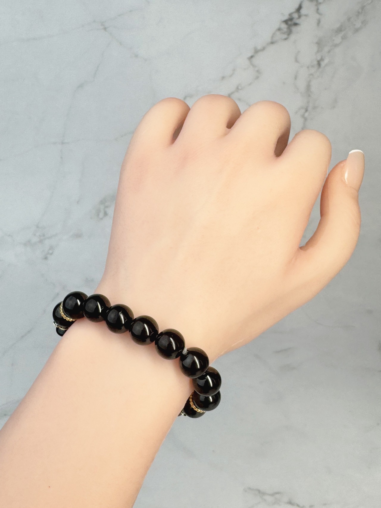 ブラックオブシディアン(蓮) オニキス ブラックトルマリンのブレスレットになります。