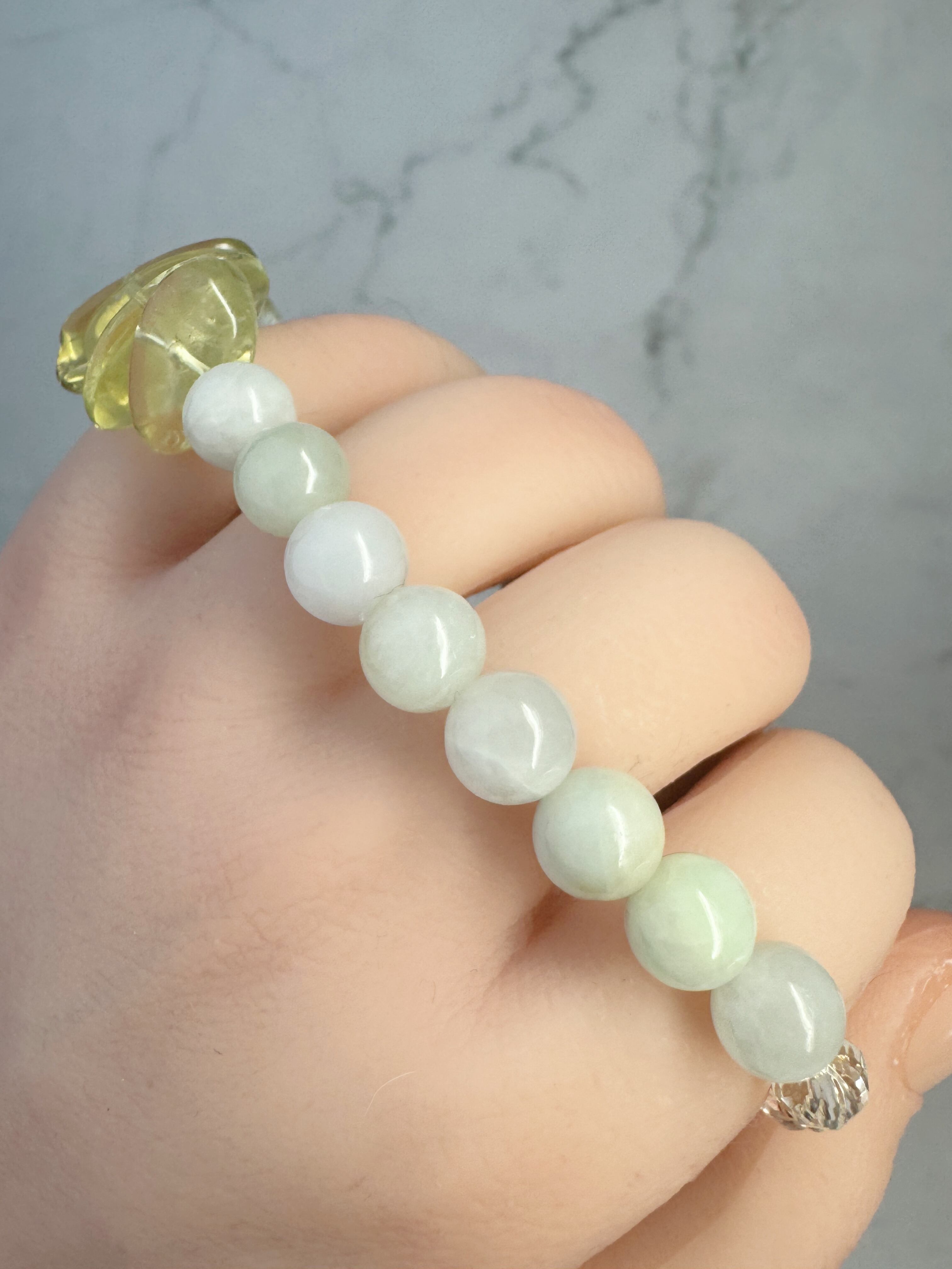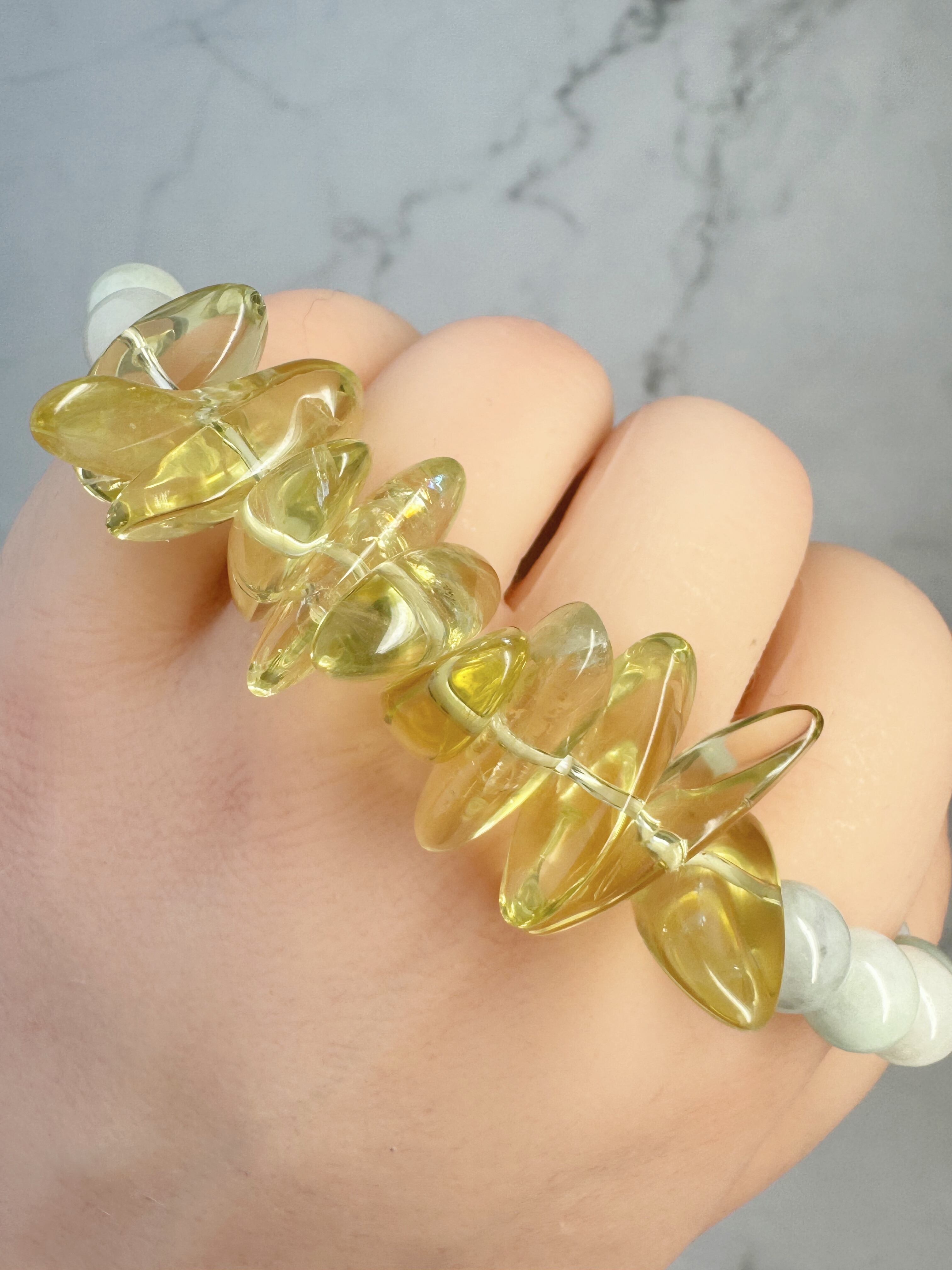 レモンクォーツ 翡翠 水晶のブレスレットになります。
