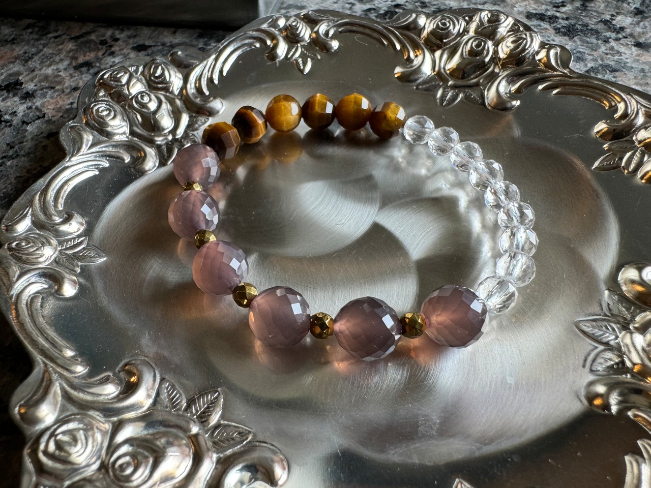 寛容さと許しの精神 ポジティブ思考で夢の実現をサポート(スモーキーパープルカルセドニー×ゴールドヘマタイト×タイガーアイ×水晶)