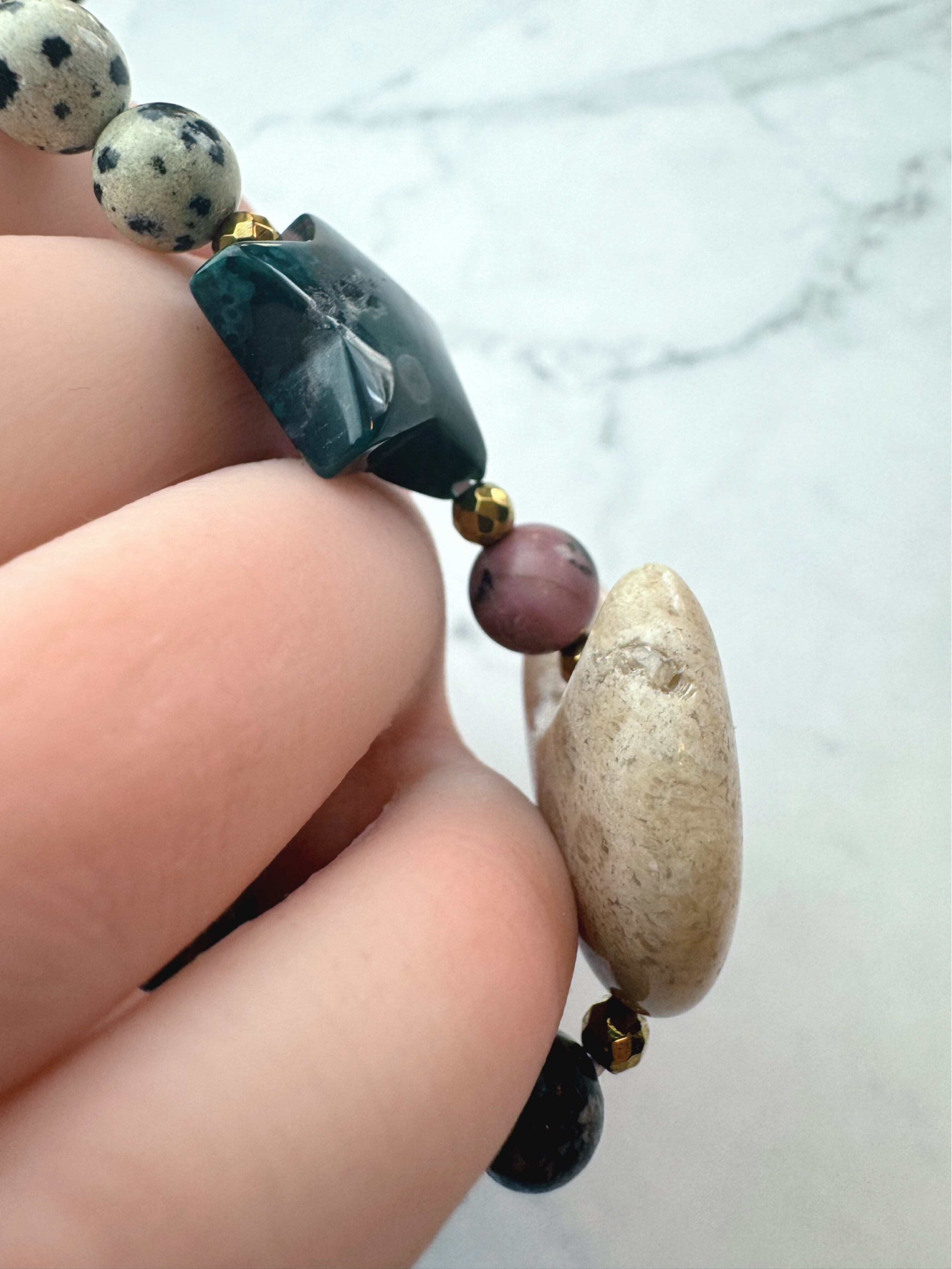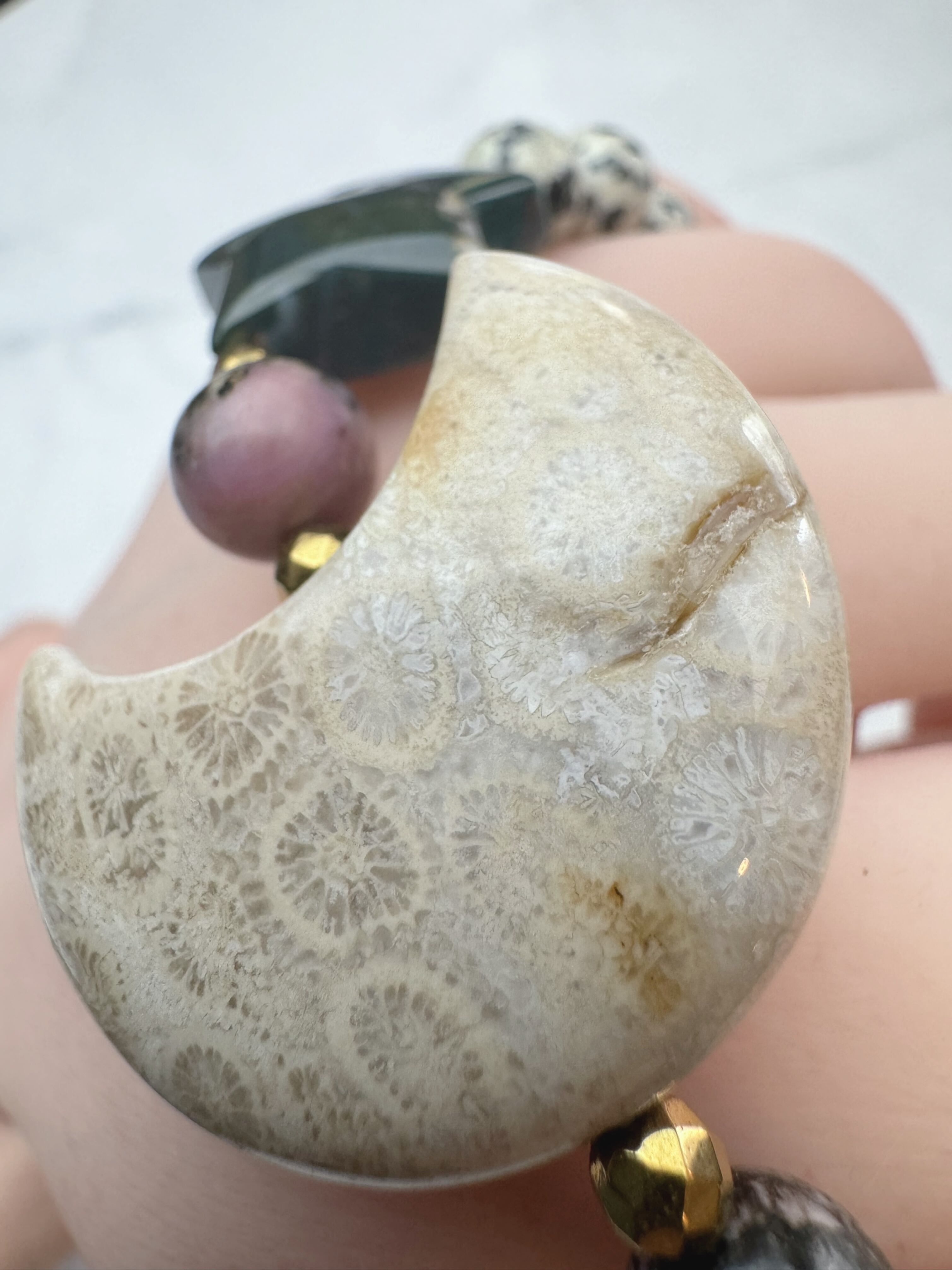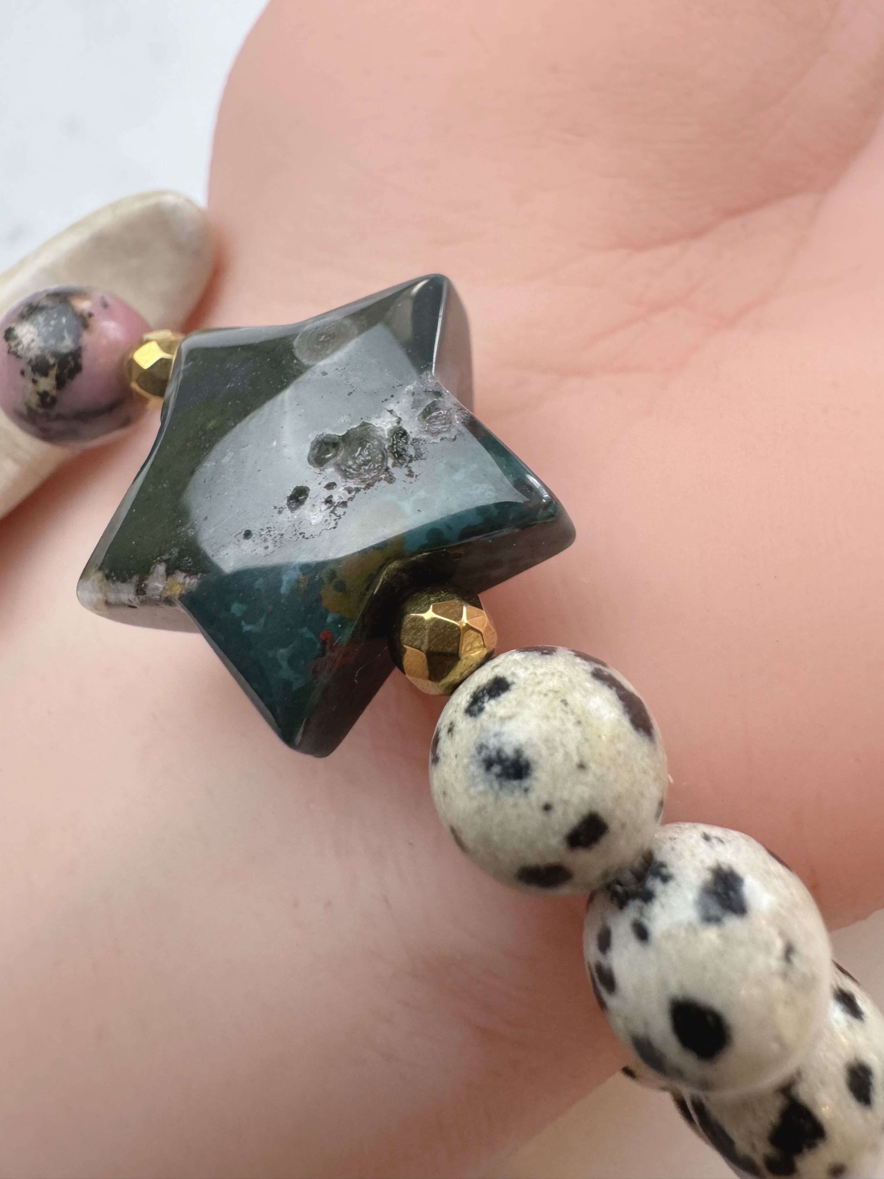 フォッシャルコーラルの月 オーシャンジャスパーの星 ダルメシアンジャスパー デンドリックロードナイト ヘマタイトゴールド