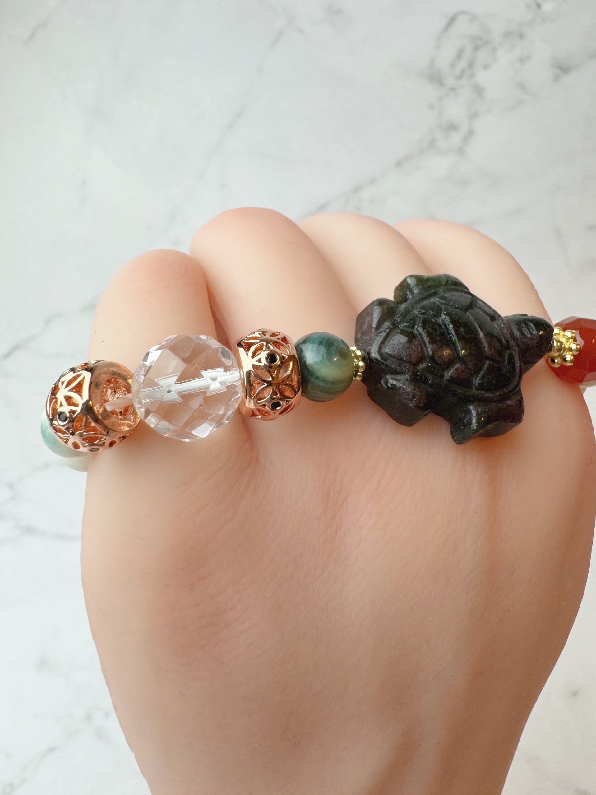 ルビーインゾイサイト海亀 夜光貝 レッドアゲート 水晶 ブレスレット