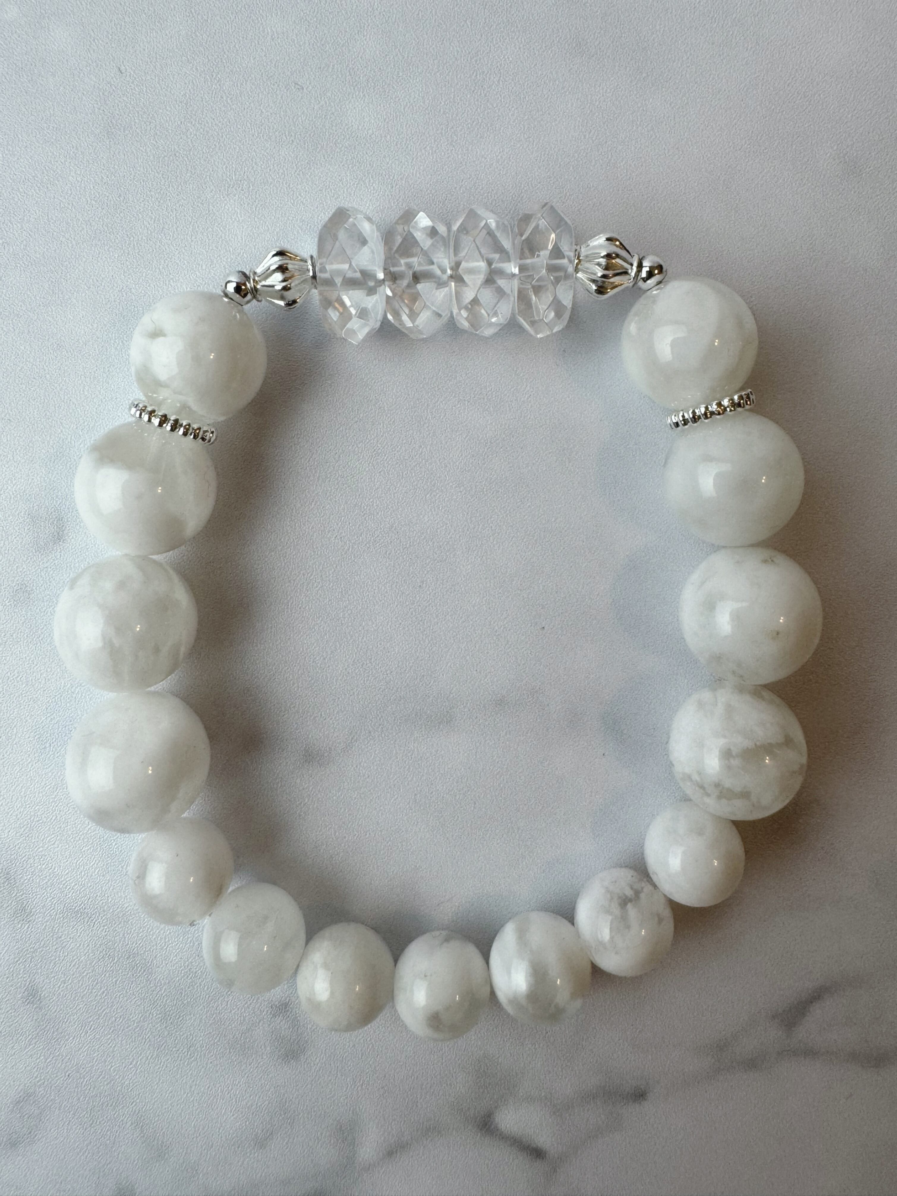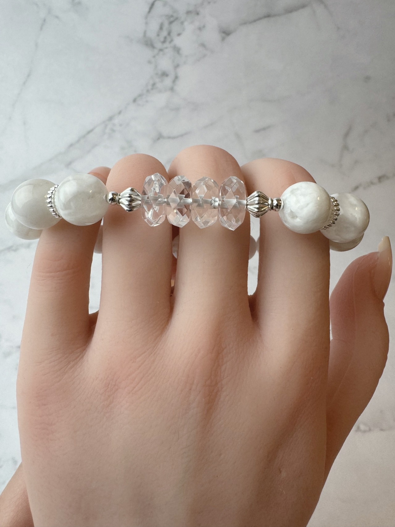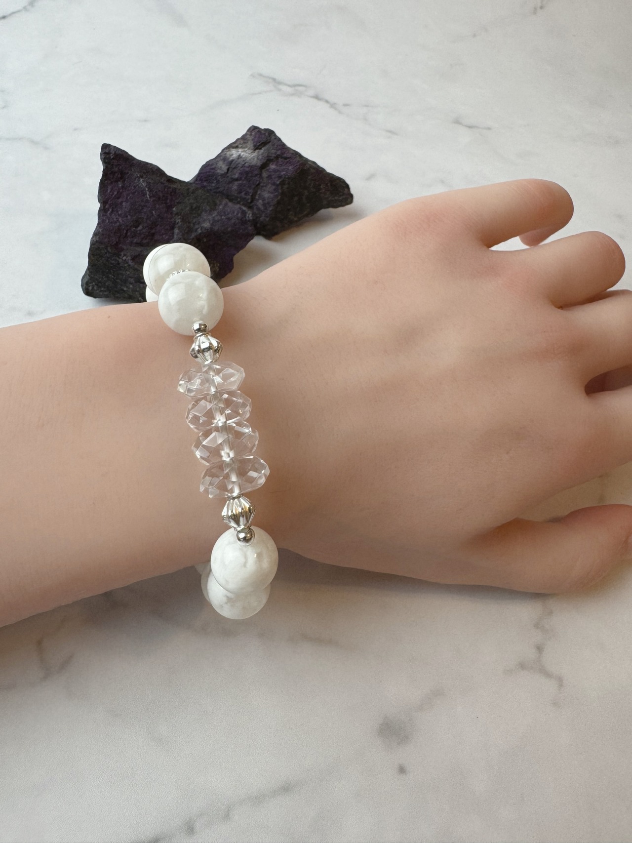 大きめのカット入りボタン型水晶をアクセントとし、大人可愛いブレスレットとなりました。
