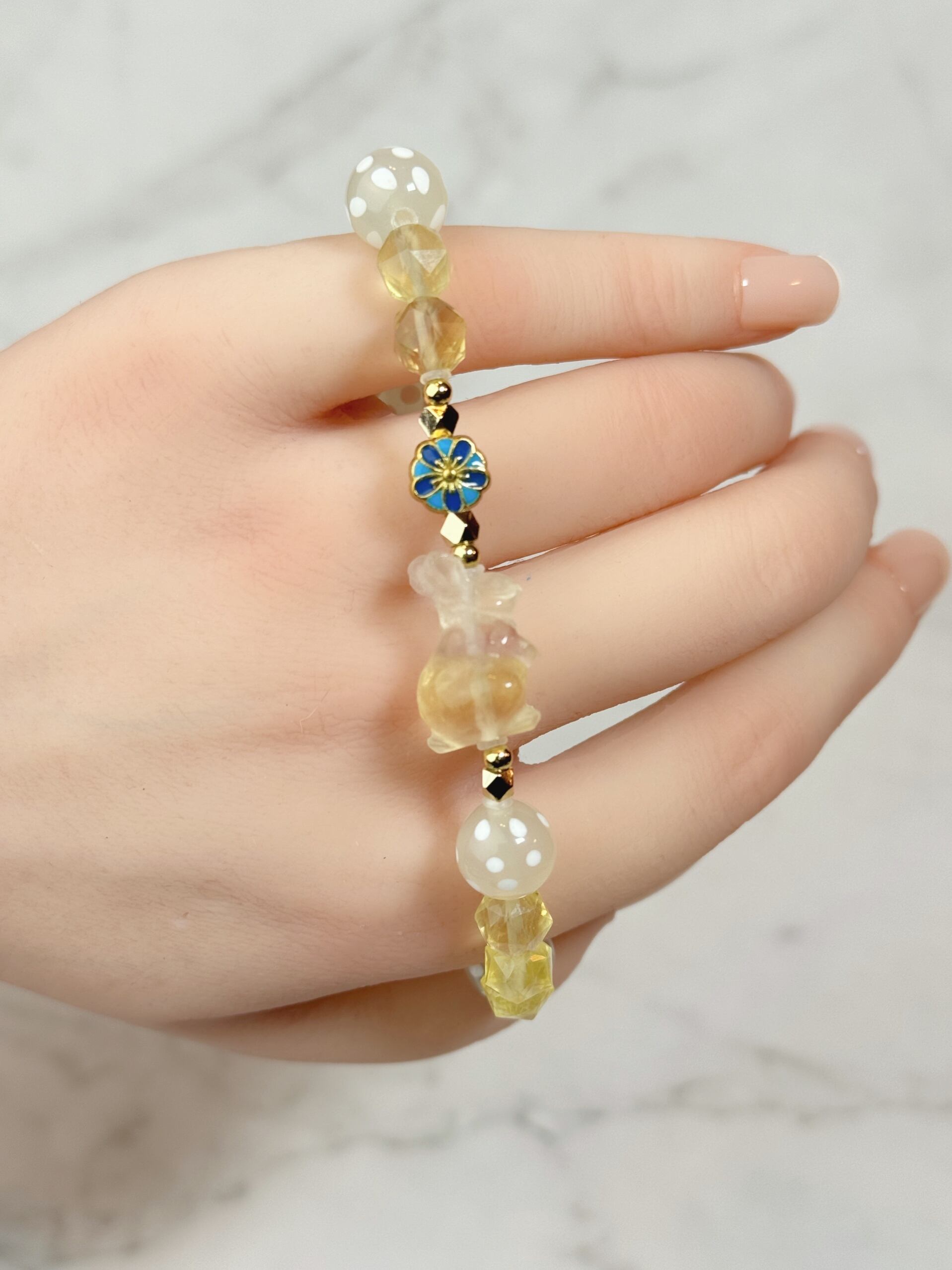 白の満点天珠と合わせる事によって、フローライトの色が引き立てられています。