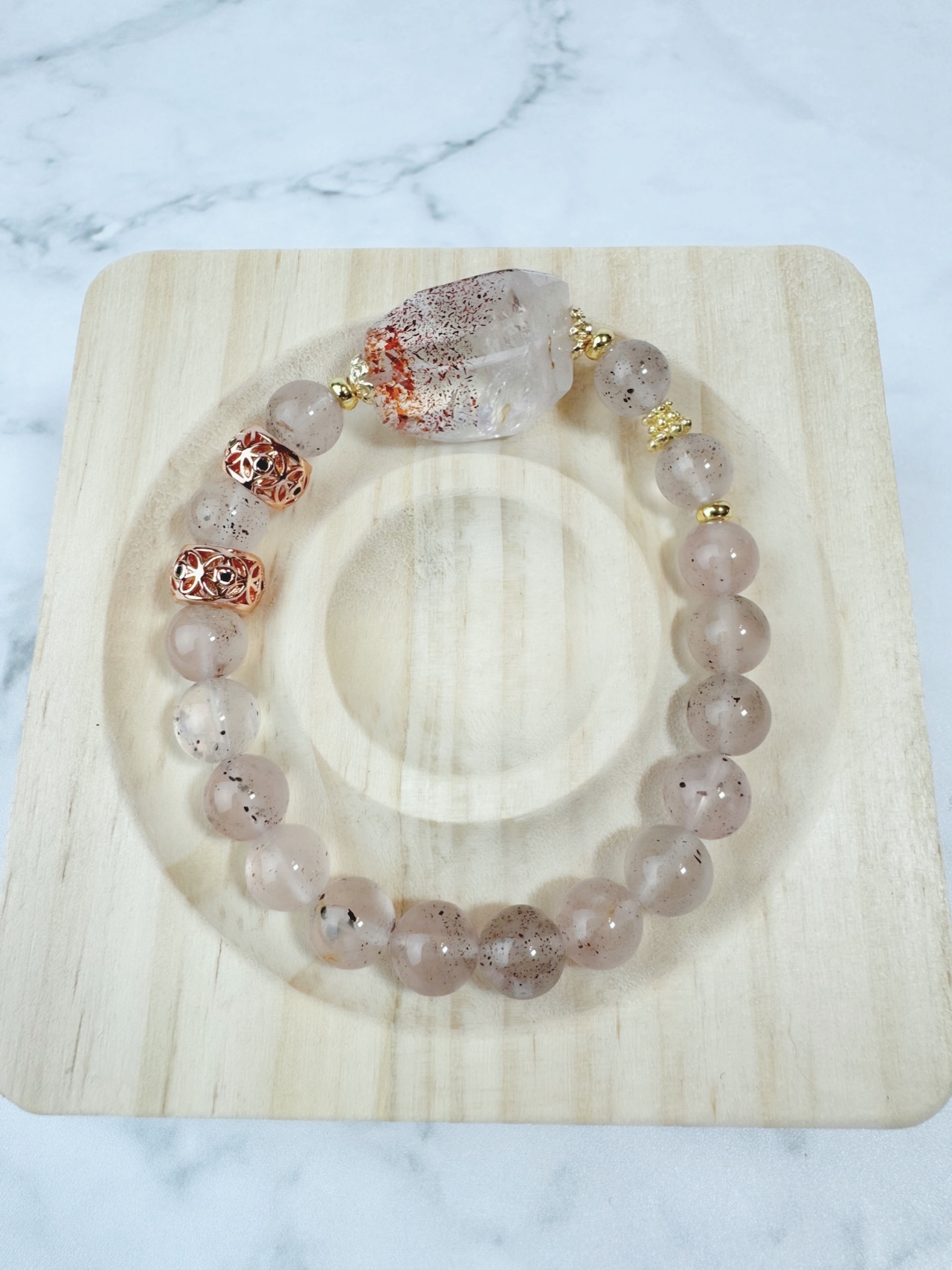 レピドクロサイトインクォーツとマイカインローズクォーツのブレスレットになります。