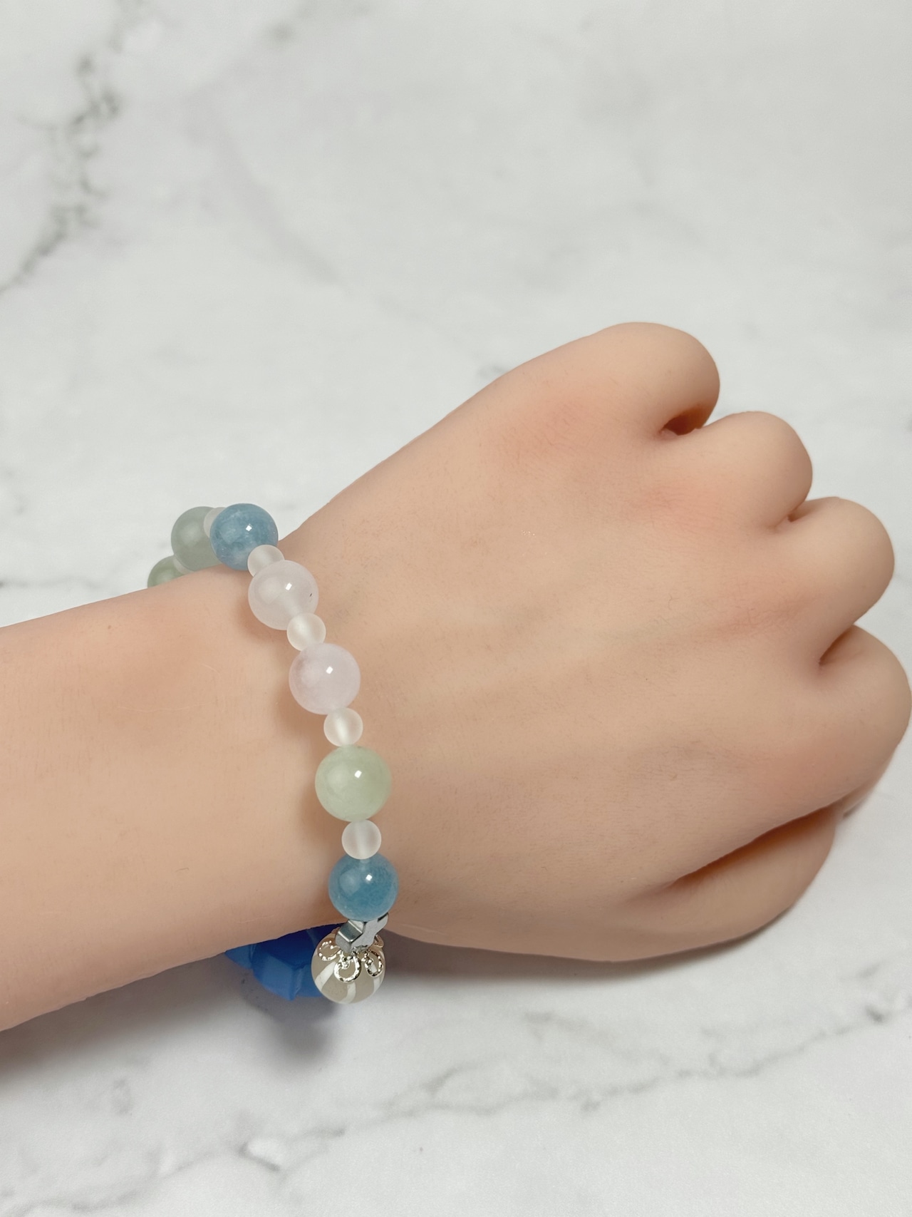 オパライトは、人工のガラス石となりますが、彫りも綺麗で立体感があり、MIXベリルと合わせることで、寄り爽やかな印象です。