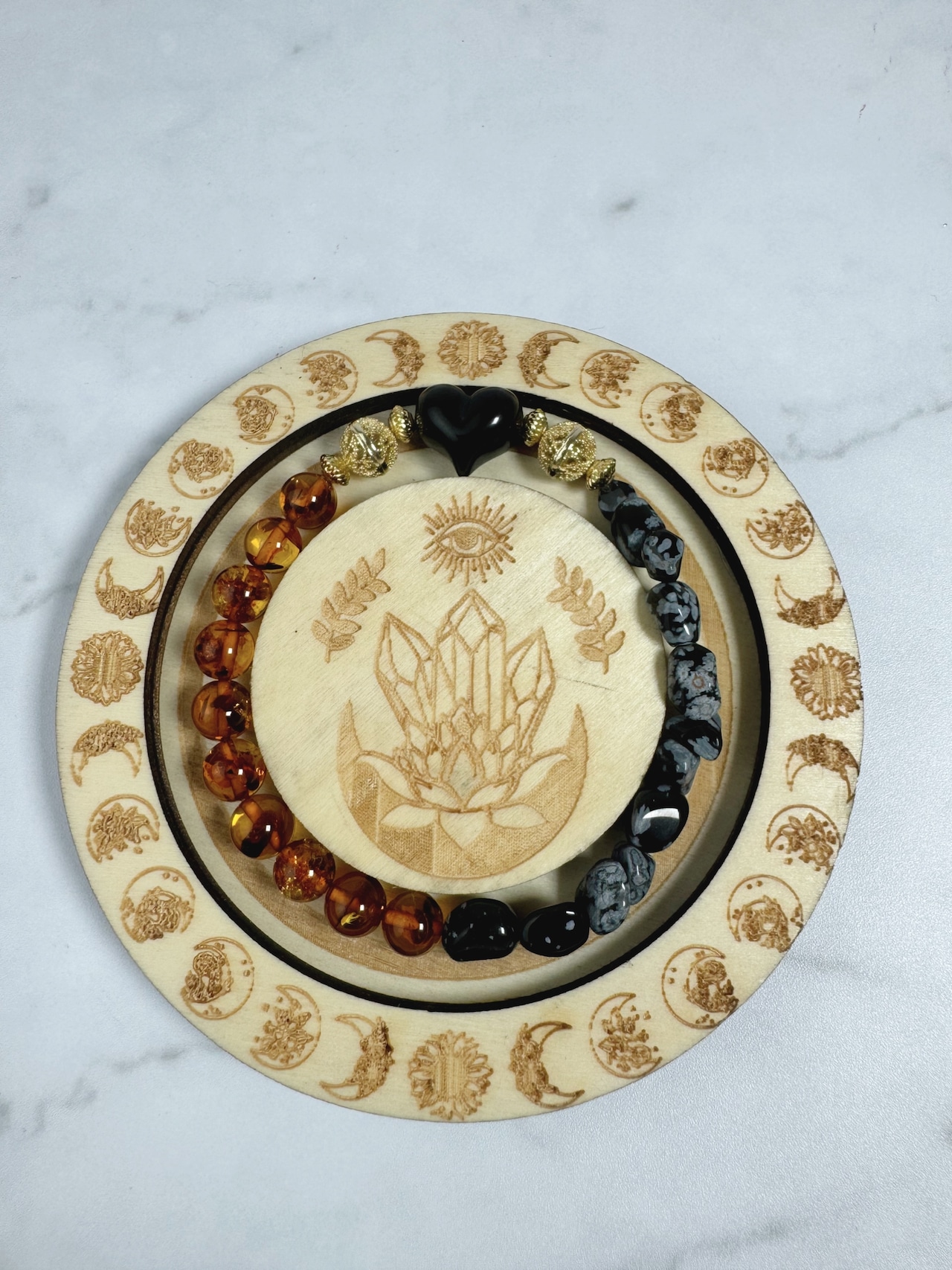 オブシディアン(ハート) スノーフレークオブシディアン ハニーナッツアンバー