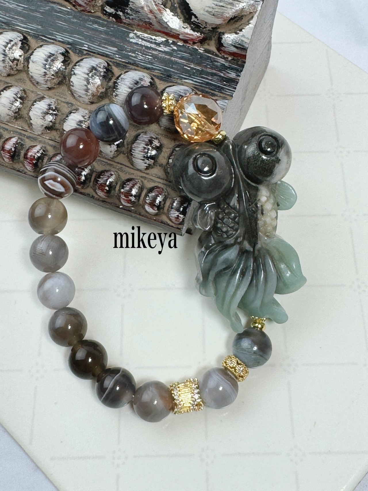 玉の部分はボツワナアゲートになり、古くから守護石として扱われてきました。