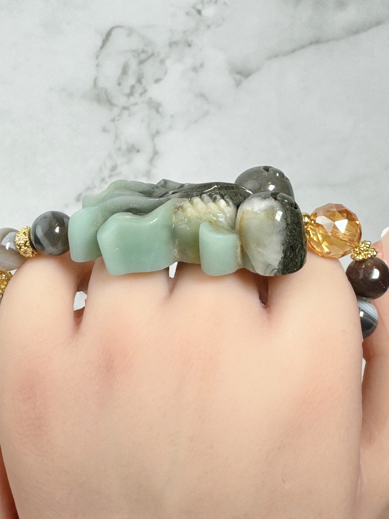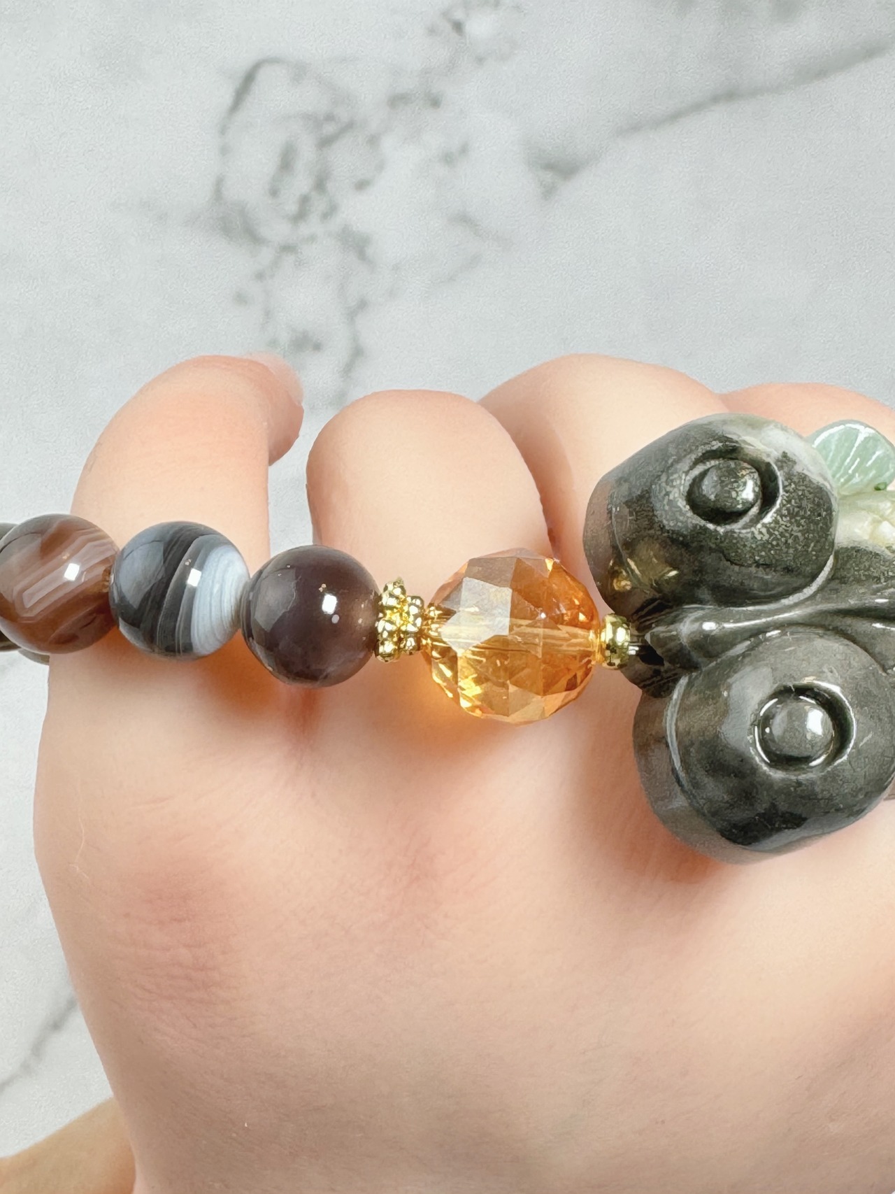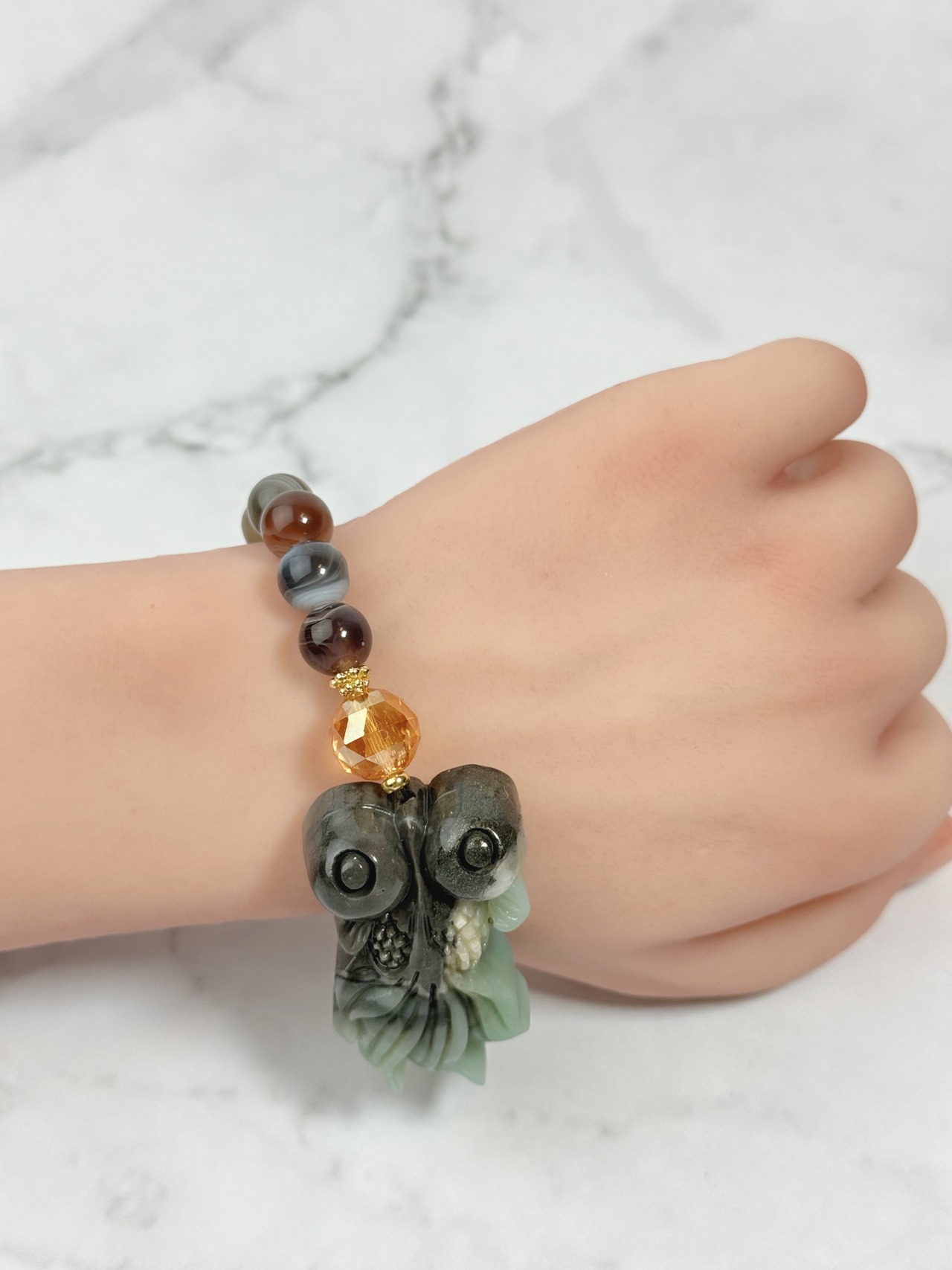 ユニークなデザインで、癒してくれるブレスレットです。