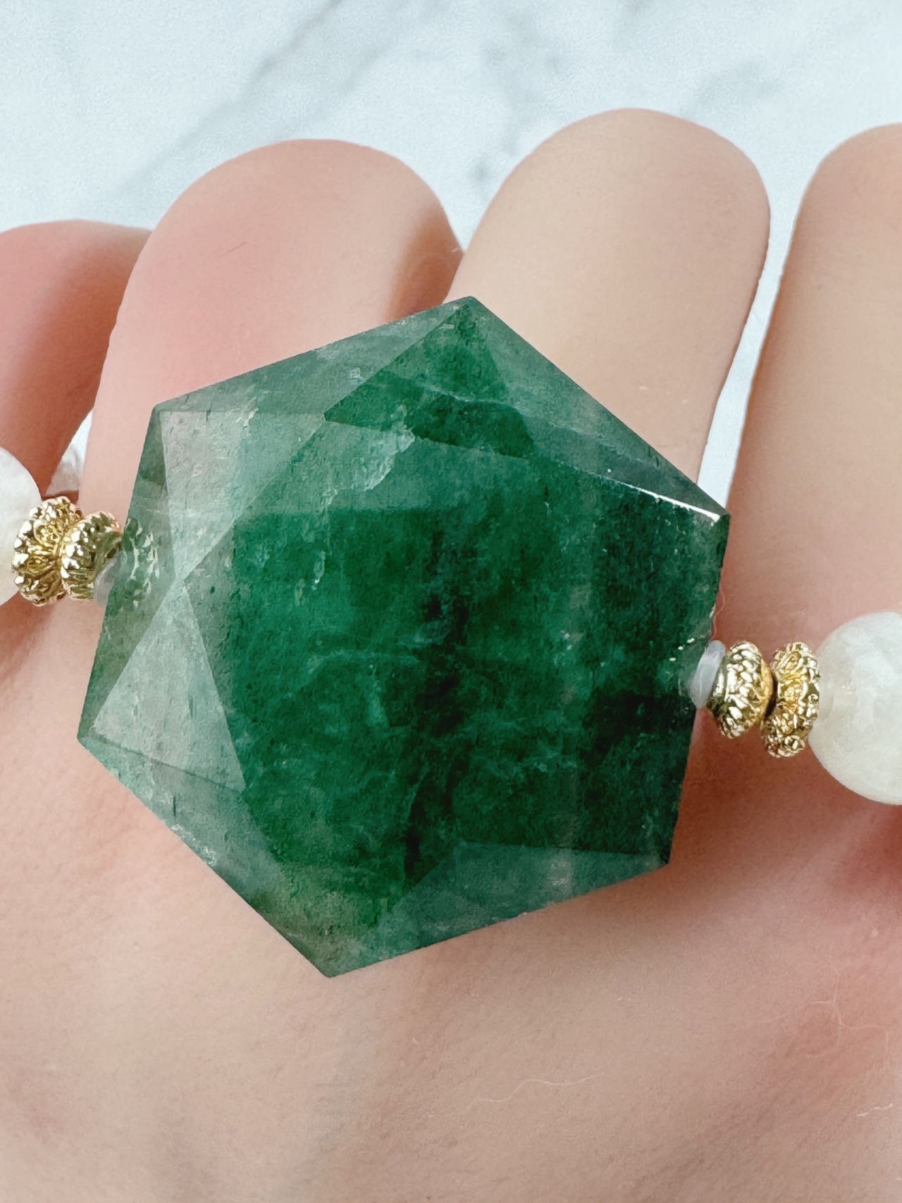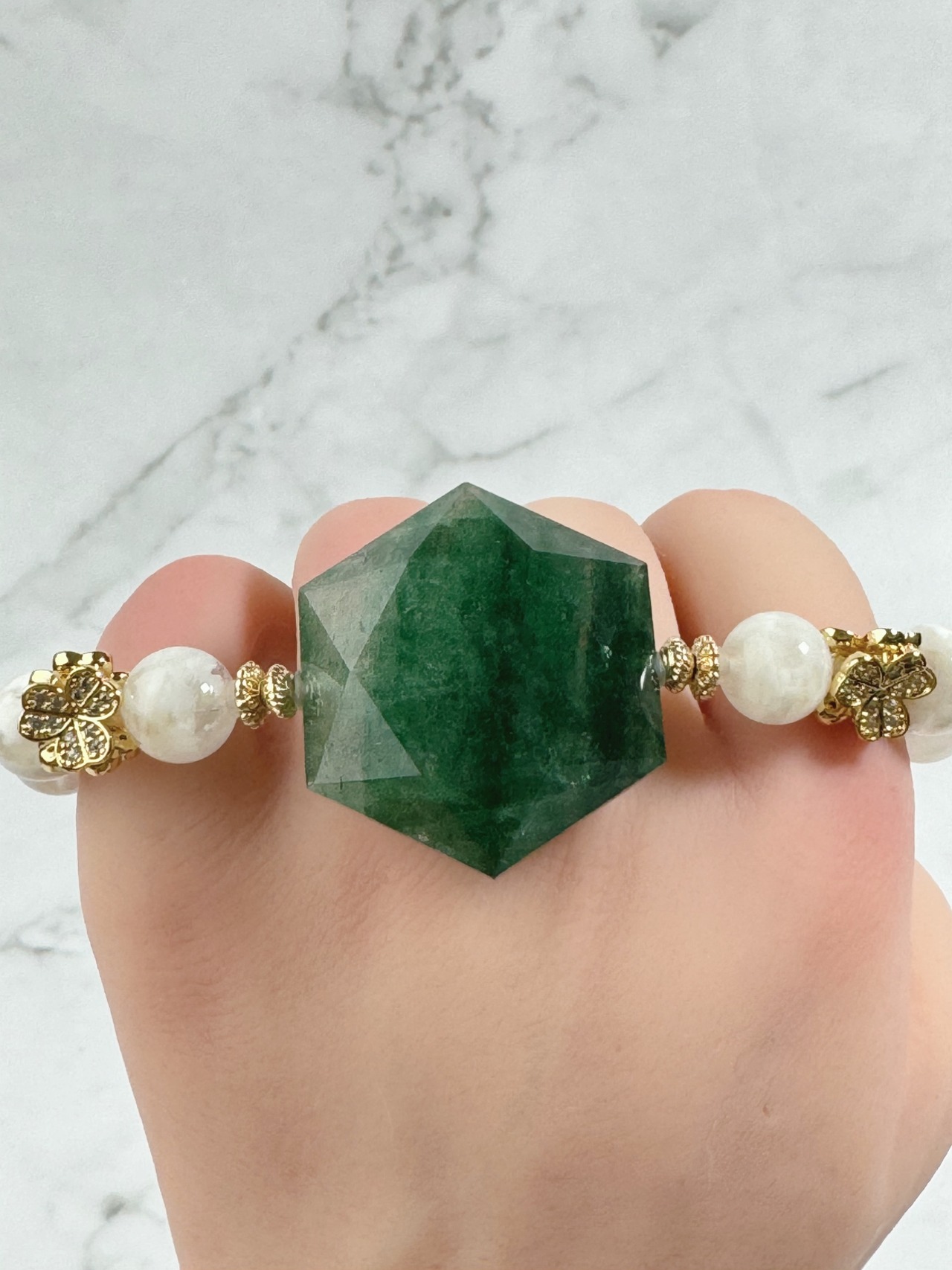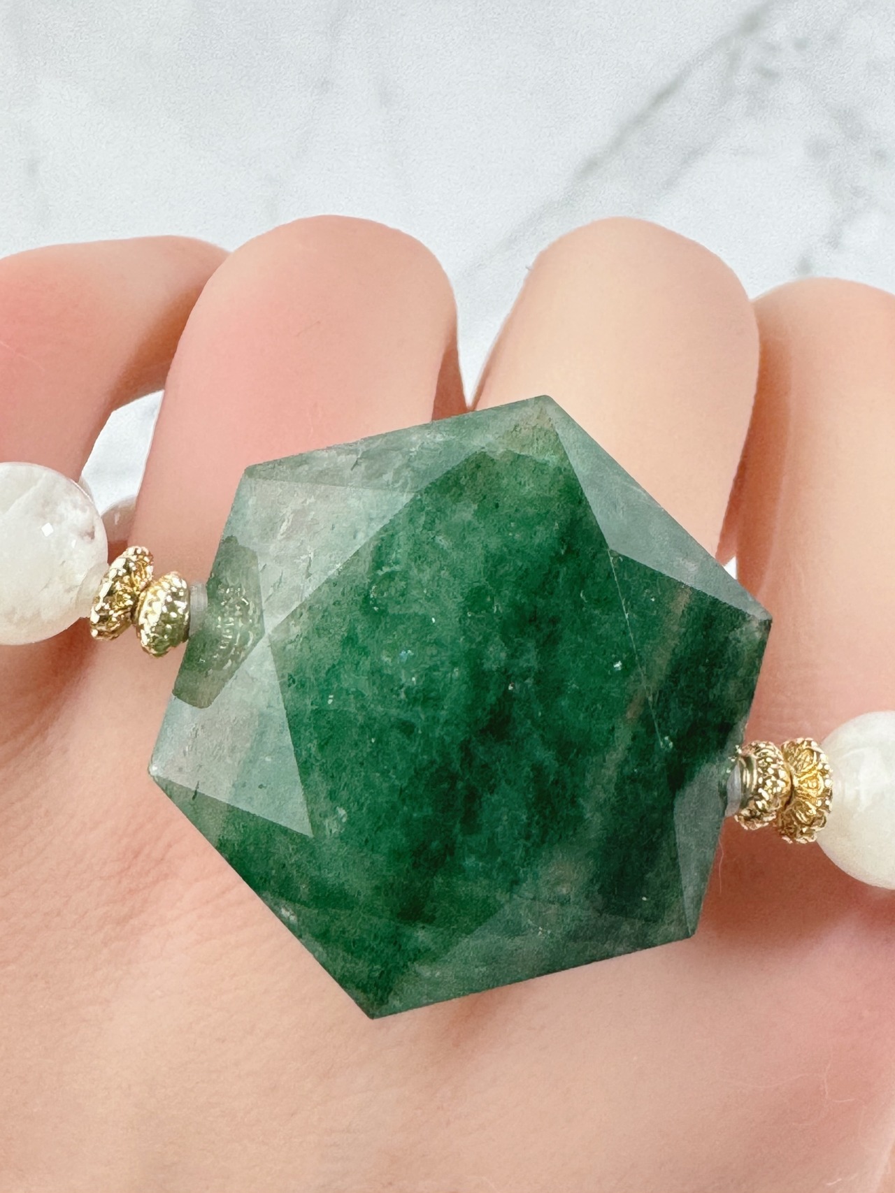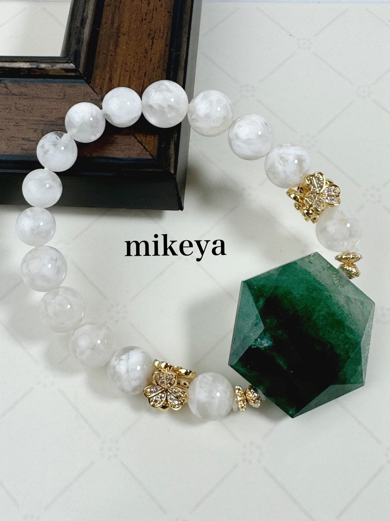 #六芒星ブレスレット#グリーンストロベリークォーツ#ホワイトセリサイトインクォーツ#mikeya#MIKEYA#ミケヤ