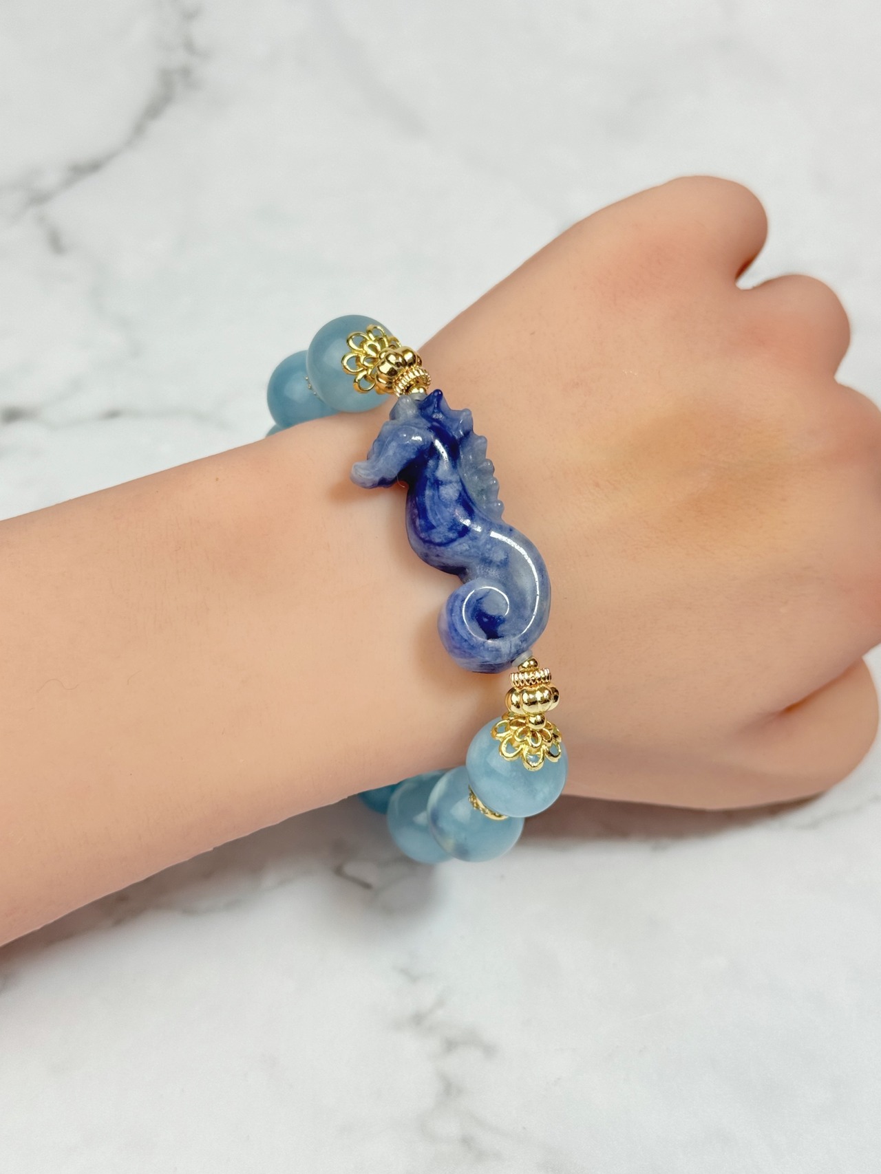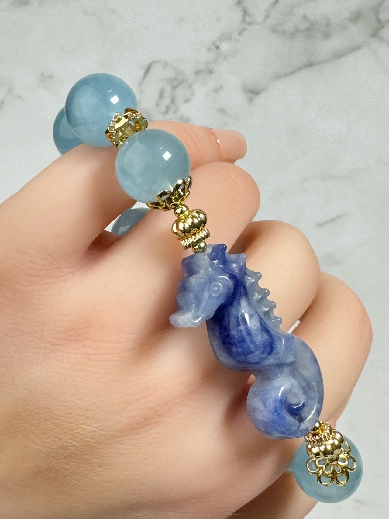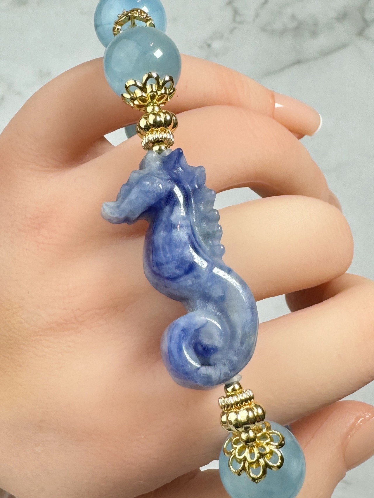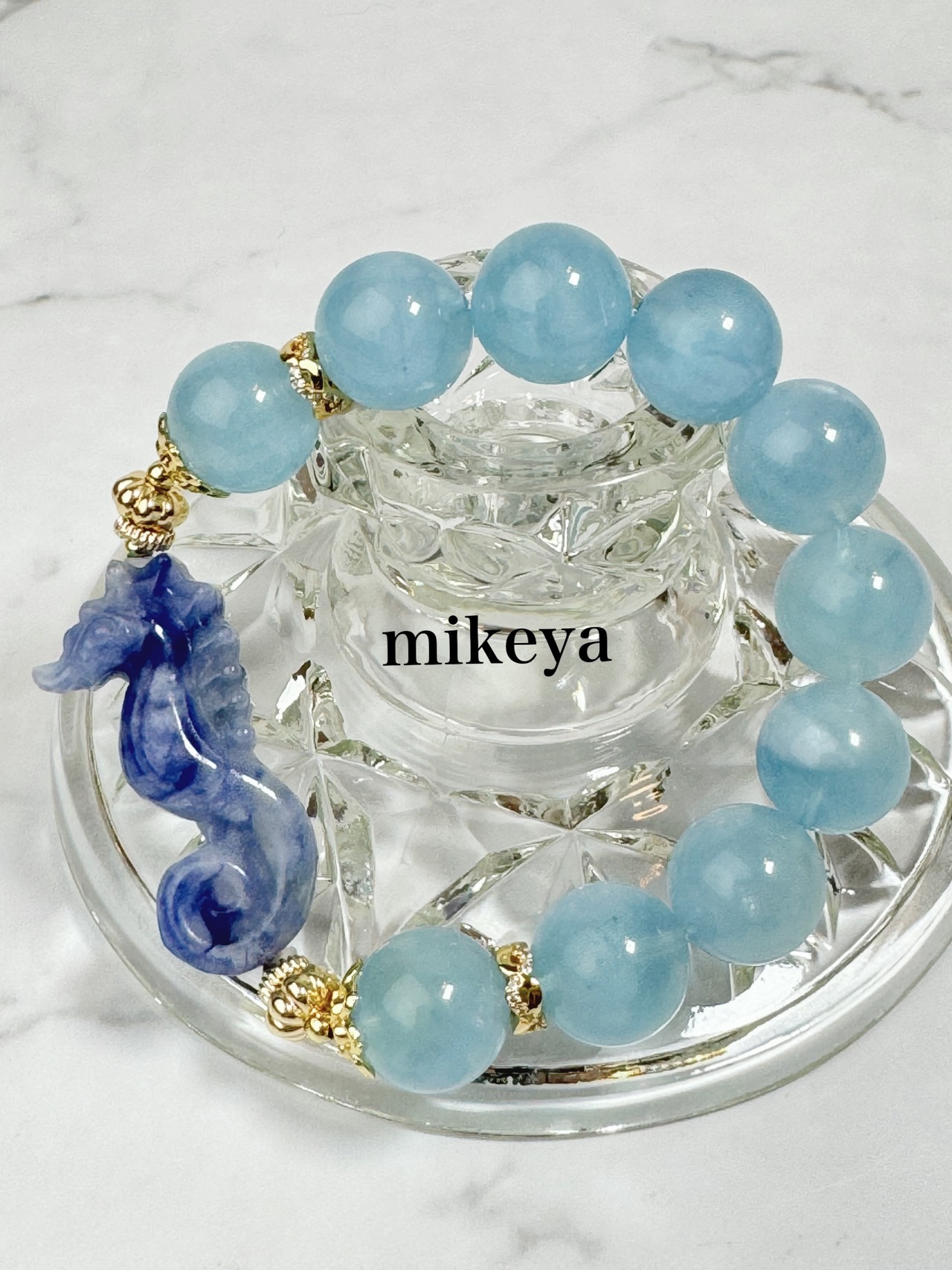 #天然石ブレスレット#パワーストーンブレスレット#天然石アクセサリー#パワーストーン好きさんと繋がりたい#天然石ブレスレット販売#アクアマリン#クラウディアクアマリン#アクアマリンブレスレット#パープルハウライト#タツノオトシゴブレスレット#mikeya#MIKEYA#ミケヤ