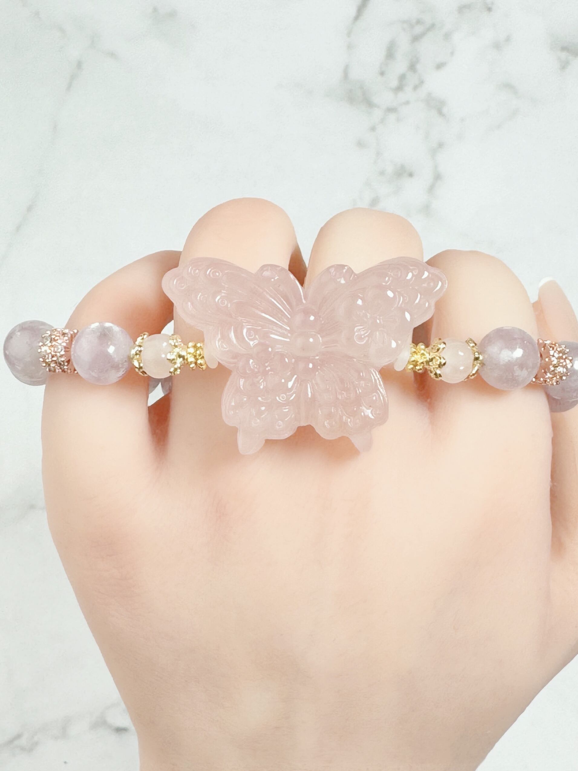 #ローズクォーツ#ローズクォーツブレスレット#蝶々ブレスレット#ピンクマイカ#ピンクマイカブレスレット#mikeya#MIKEYA#ミケヤ