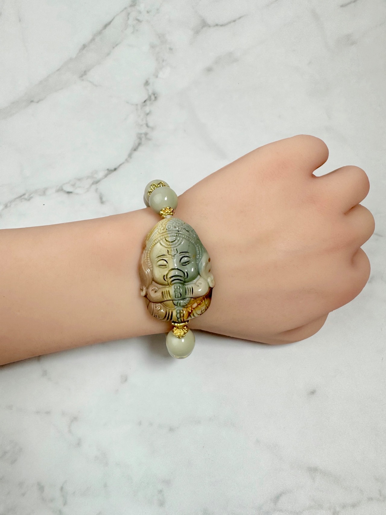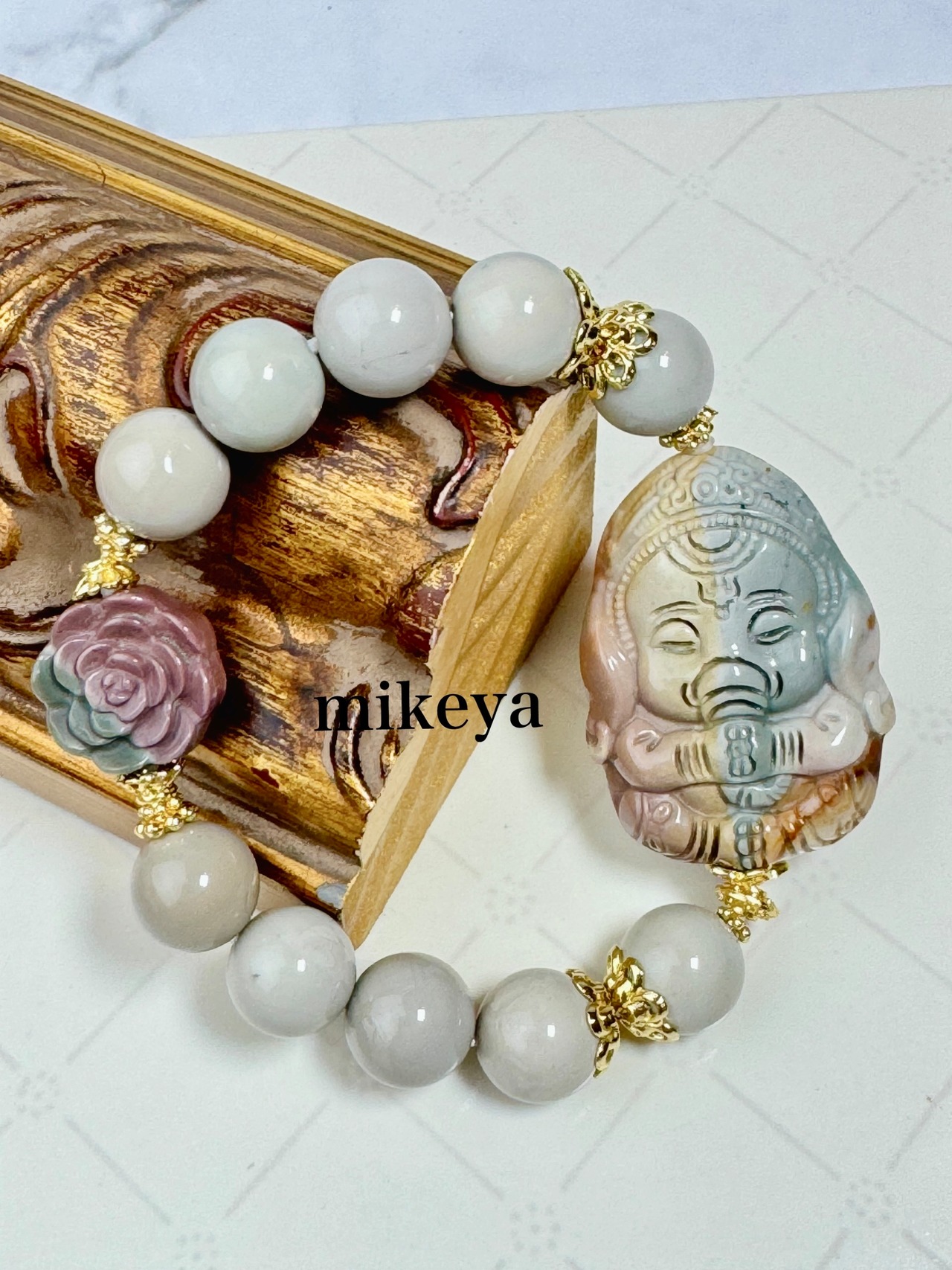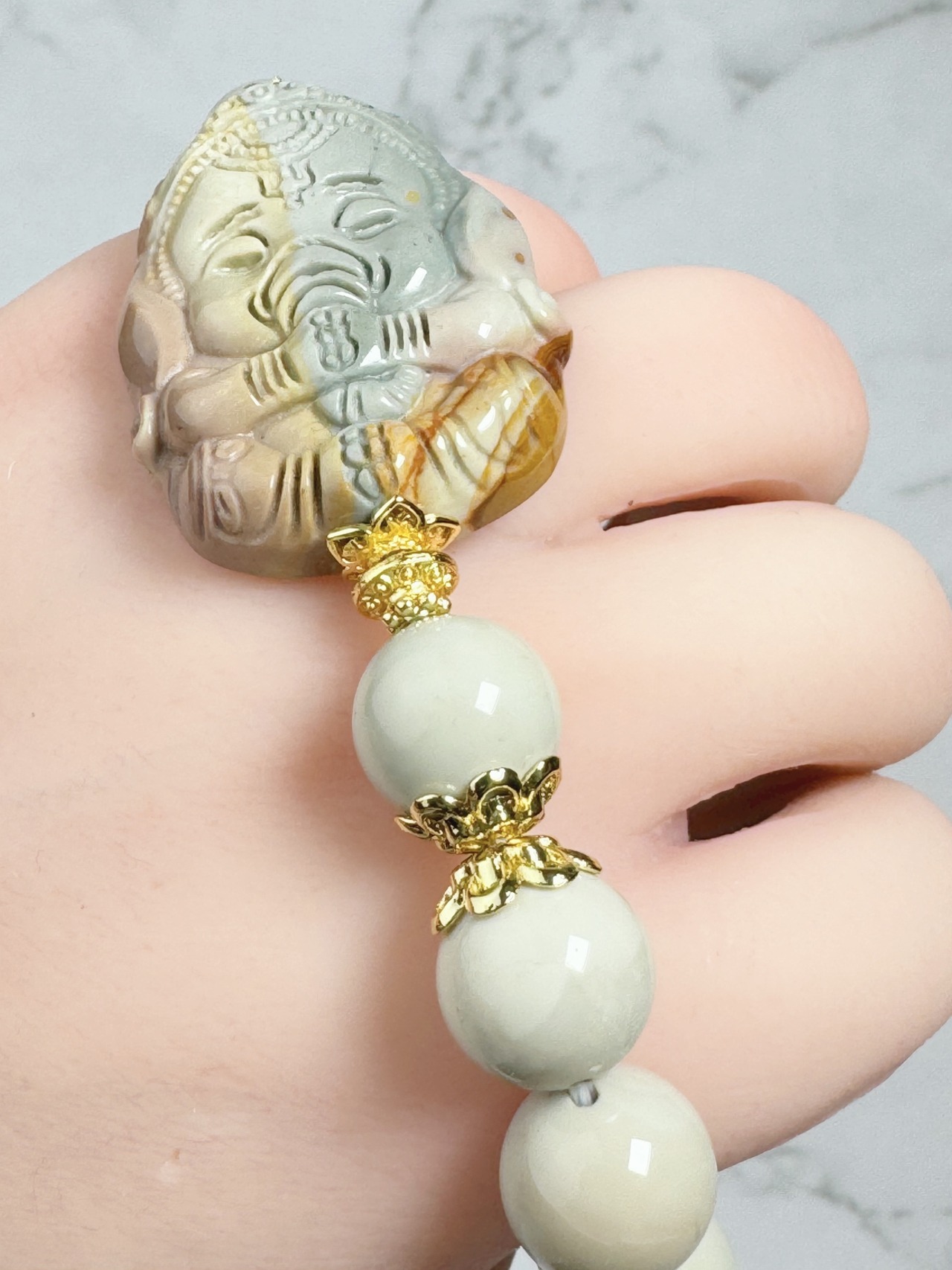 赤ちゃんガネーシャなので、神様だけれど愛嬌がり、撫で撫でしたくなるブレスレットです。
