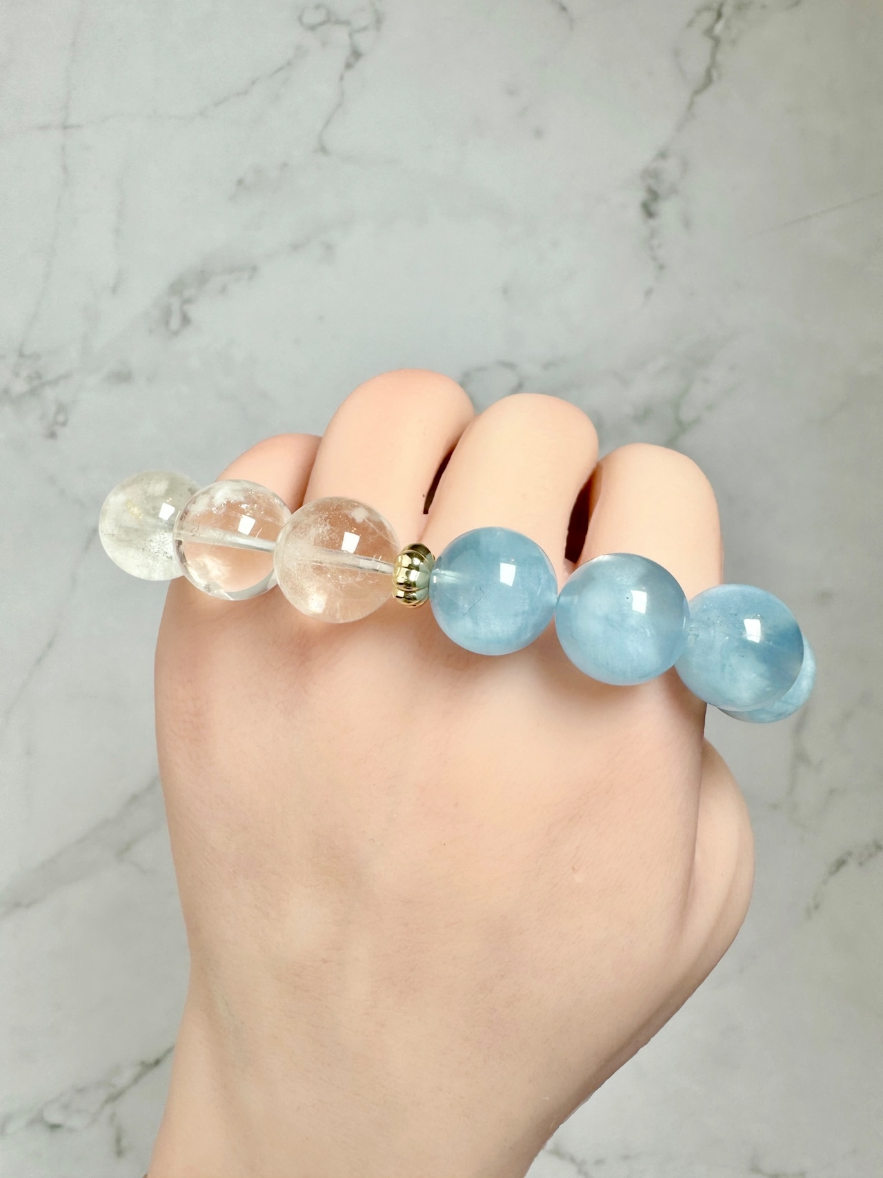 高品質のクラウディアクアマリンのブレスレットを、もう少しお求めやすい値段でご提供できないかと思い、作ったブレスレットです。