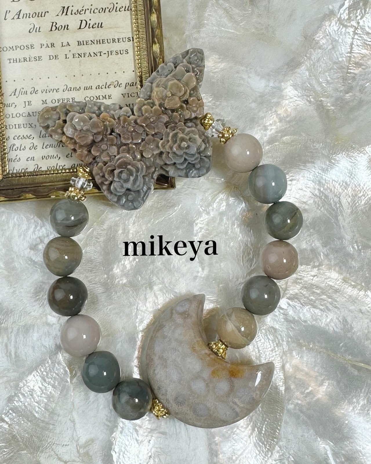 #天然石#パワーストーン#天然石ブレスレット#パワーストーンブレスレット#天然石アクセサリー#アラシャンアゲートブレスレット#フォッシャルコーラル#蝶々アクセサリー#MIKEYA