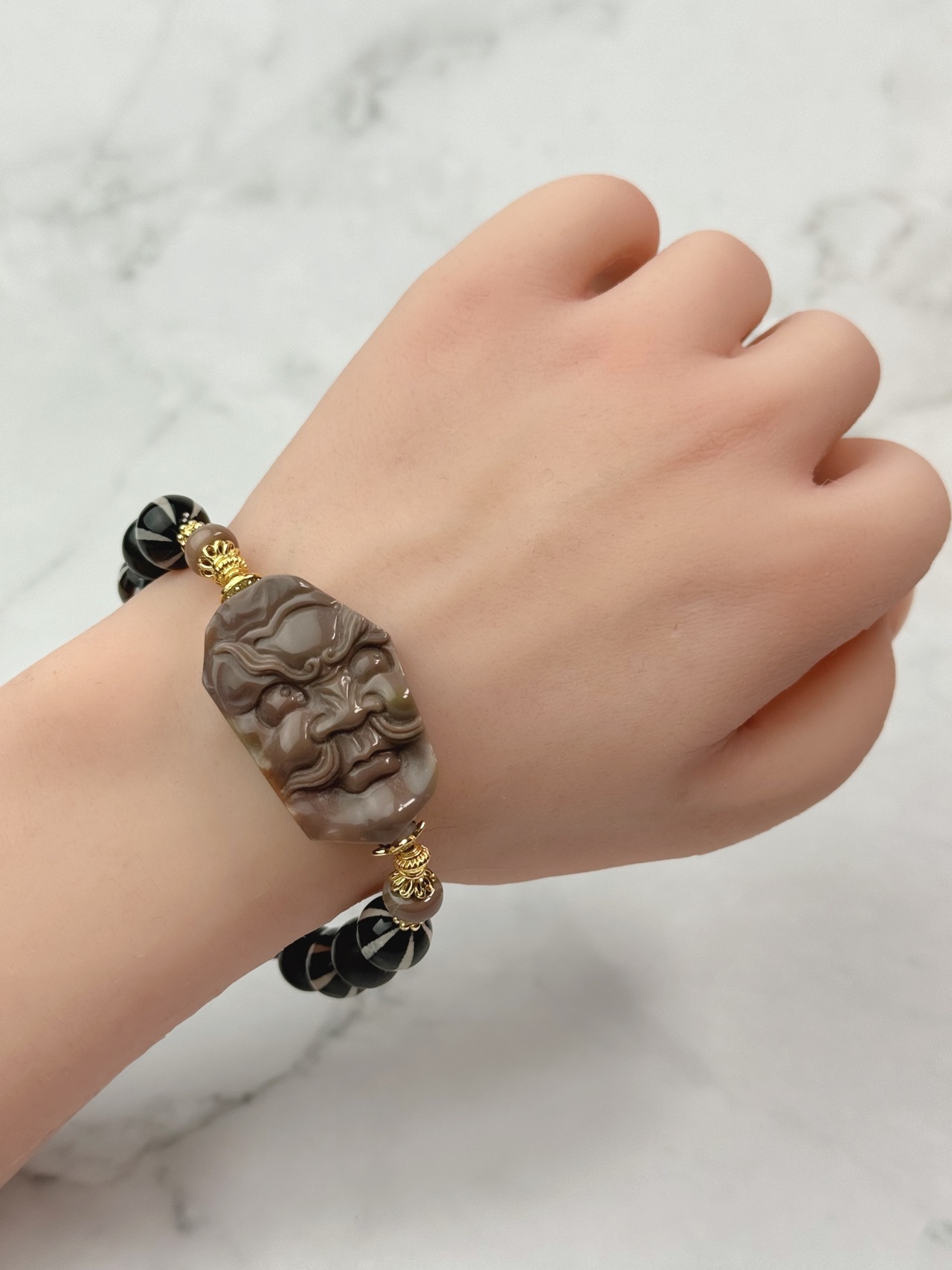 アラシャンアゲート(毘沙門天)、シュンガイト、西瓜天珠のブレスレットです。