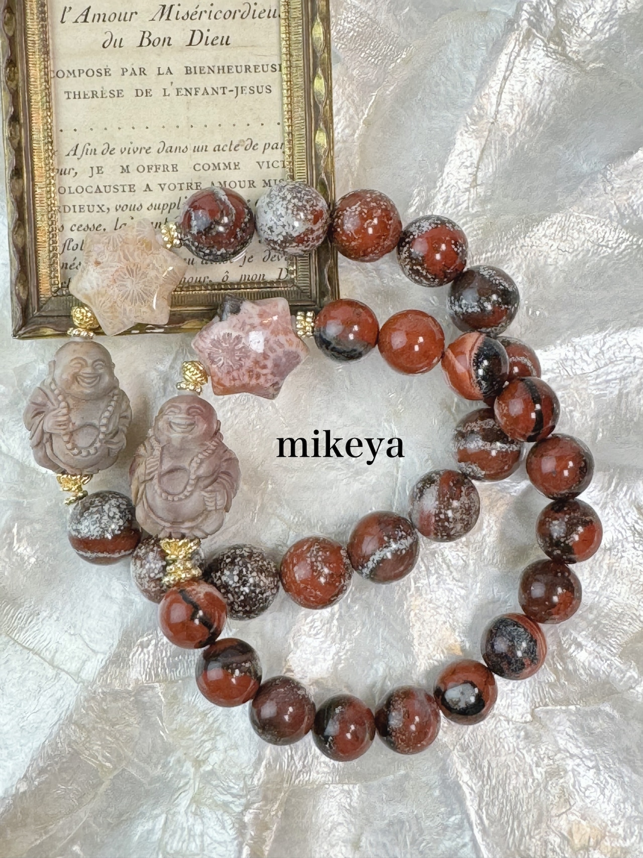 #天然石#パワーストーン#天然石ブレスレット#パワーストーンブレスレット#天然石アクセサリー#金運#布袋様#七福神#アラシャンアゲート#レッドジャスパー#フォッシャルコーラル#ミケヤ#MIKEYA#mikeya