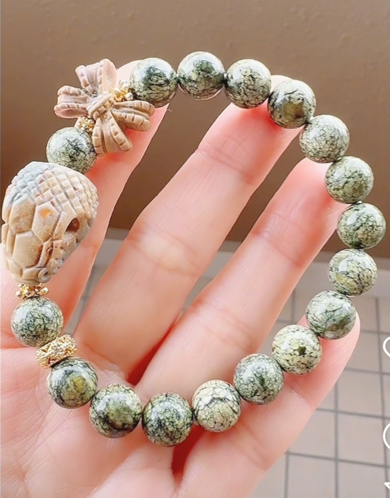 薬王石が蛇のような模様をしており、リアルがんこちゃんのような、ブレスレットとなりました。