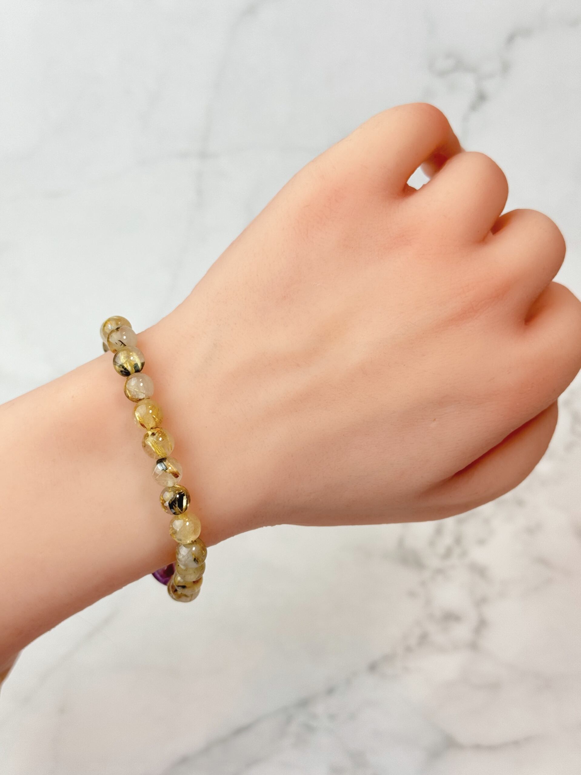 タイチンルチルクォーツの観音様ブレスレットになります。