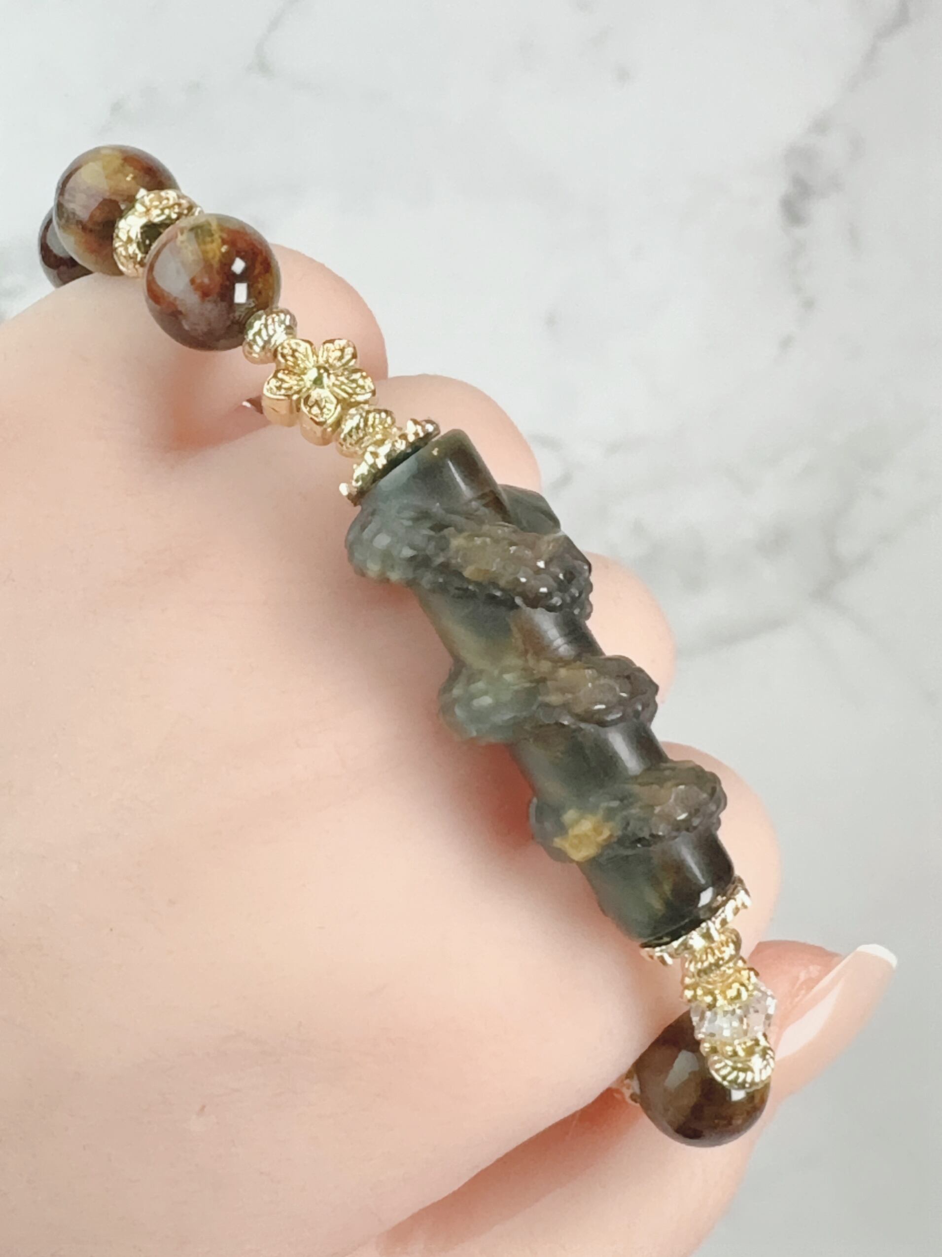 タイガーアイの蛇天珠とピーターサイトのブレスレットになります。